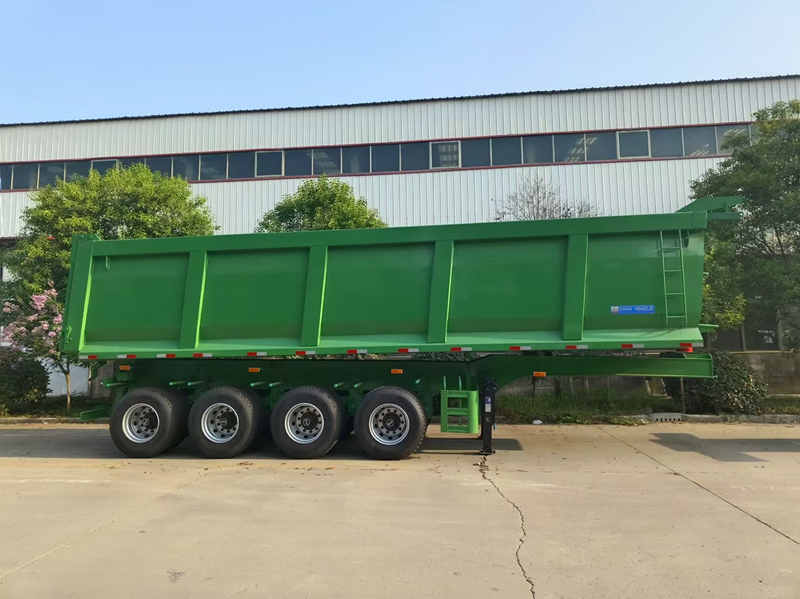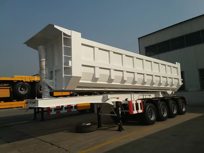 รถพ่วงบรรทุกแบบดั๊มพ์ข้างรูปตัวยู 50 ตัน แบบไฮดรอลิก 4 เพลา ดั๊มพ์ท้าย