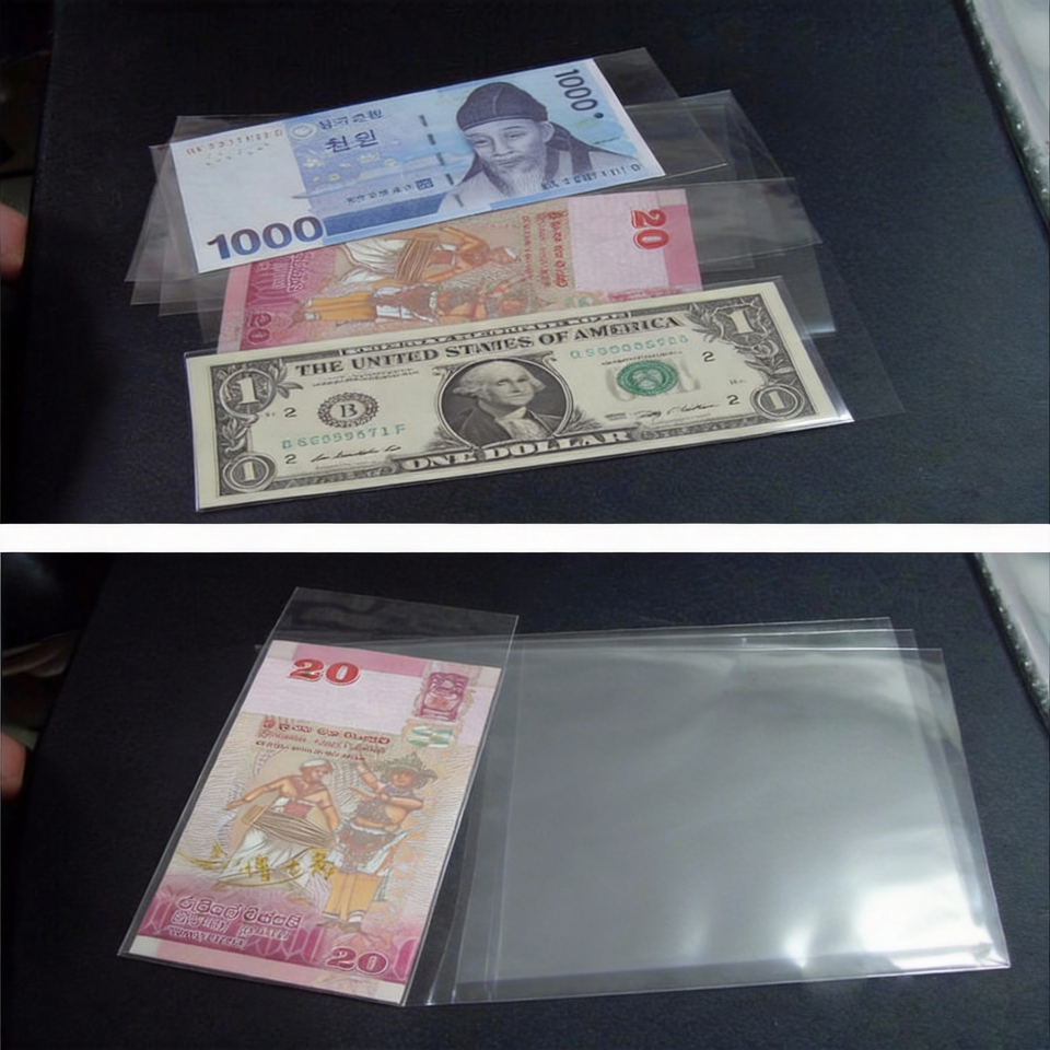 ซองใส่ธนบัตร BOPP 50 ชิ้น แบบใส ป้องกันฝุ่น ป้องกันความชื้น สำหรับสะสมของโบราณ และใช้กับกรอบรูป