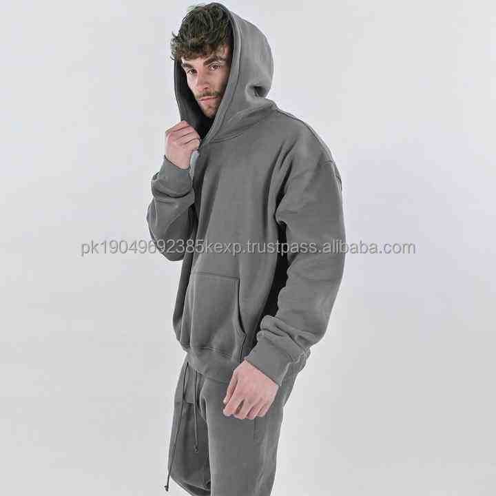 เสื้อฮู้ดดี้ผ้าฟลีซหนานุ่ม 500 แกรม ผ้าโพลีเอสเตอร์ 30% ผ้าฝ้าย 70% ทรงโอเวอร์ไซส์ ทรงบ็อกซี่ ไม่มีลาย สำหรับผู้ชาย
