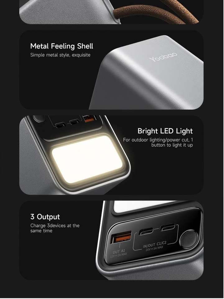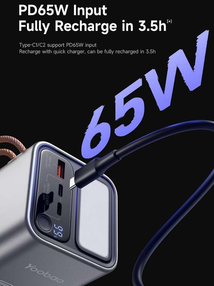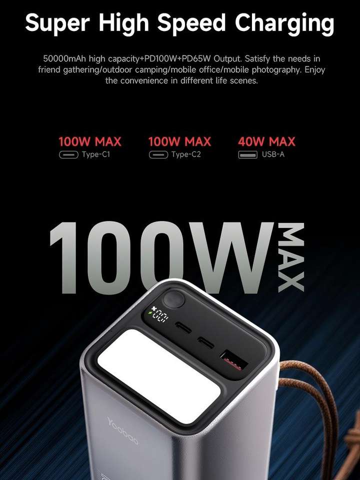 แบตสำรอง YOOBAO H5 Pro ความจุสูง 50000mAh ชาร์จเร็ว 100W สำหรับแล็ปท็อป พร้อมไฟ LED หน้าจอแสดงผลแบบดิจิตอล และสายคล้องคอ