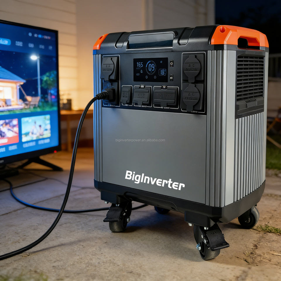 สถานีไฟฟ้าพกพา BIGINVERTER 5000W 5000Wh สำหรับใช้กับพัดลมกลางแจ้ง ไฟฉุกเฉินในบ้าน และระบบทำความเย็นยามค่ำคืน