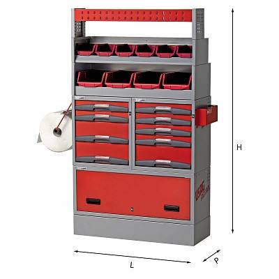 ตู้เก็บเครื่องมือ 5006 E9 สีแดงและสีเทา พร้อมลิ้นชักและช่องเก็บของสำหรับจัดระเบียบในโรงงาน
