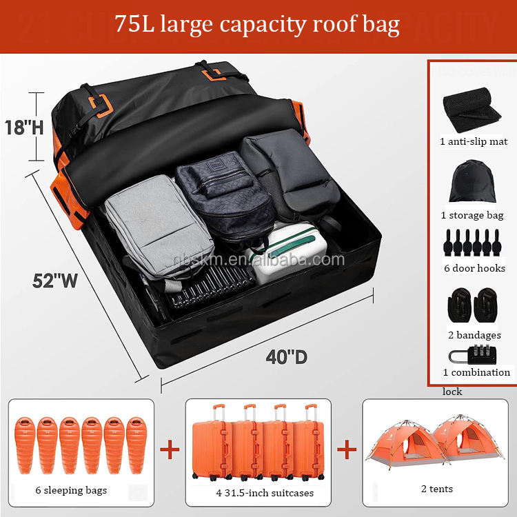 ถุงหลังคา500D วัสดุตาข่ายกันฉีกขาดและกันน้ำเหมาะสำหรับชิ้นส่วนดัดแปลงรถกระบะ