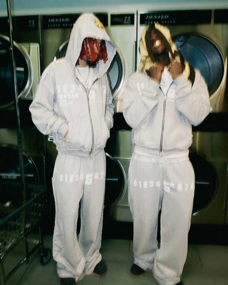 เซ็ตเสื้อวอร์มมีฮู้ดสำหรับผู้ชายชุดออกกำลังกายผ้าคอตตอนพิมพ์ลายเทอร์รี่มีฮู้ดสำหรับใส่วิ่ง500GSM น้ำหนัก100%