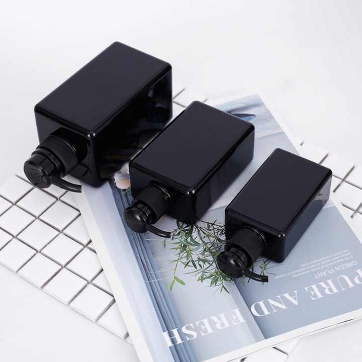 ขวดพลาสติกสีดำขนาด 500 มล. 1000 มล. สำหรับโลชั่นหรือสบู่ล้างมือ วัสดุ PET หรือ HDEP