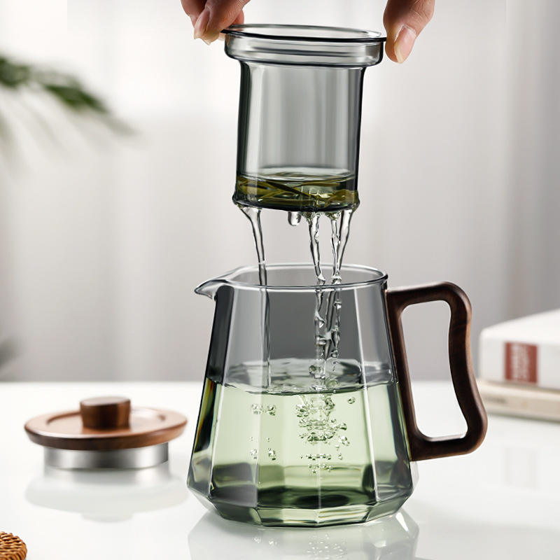 กาน้ำชาแก้วโบโรซิลิเกตใสขนาด 500 มล. ทนความร้อน ใช้กับเตาได้ พร้อมฝาปิดและด้ามจับไม้ สำหรับชงชาใบหลวม