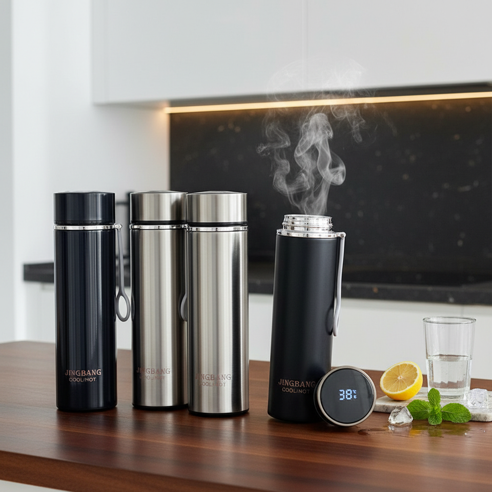 กระติกน้ำสแตนเลสสตีลสูญญากาศขนาด500มล. หรูหราภาชนะใส่เครื่องดื่มทำจากวัสดุ PC พร้อมฝาปิด
