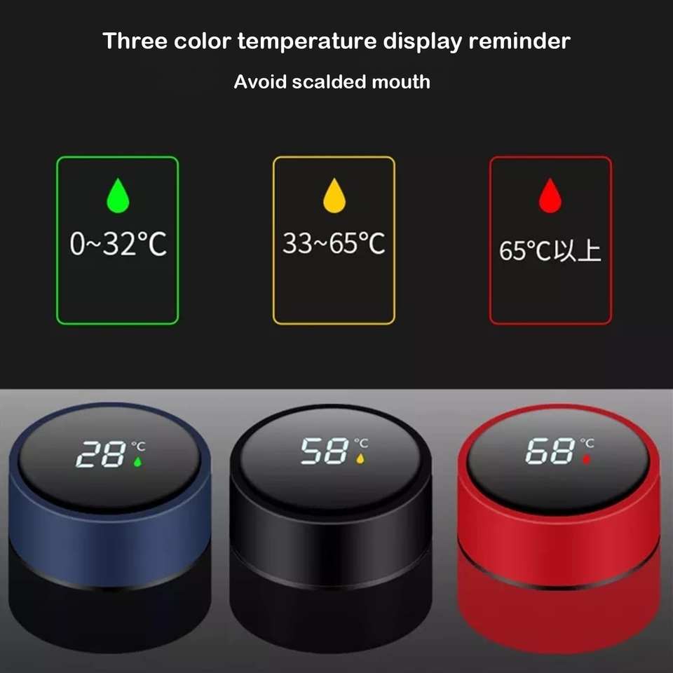 กระติกน้ำร้อนอัจฉริยะสแตนเลส 304 ขนาด 500 มล. พร้อมหูจับและฝาปิด แบบสุญญากาศ