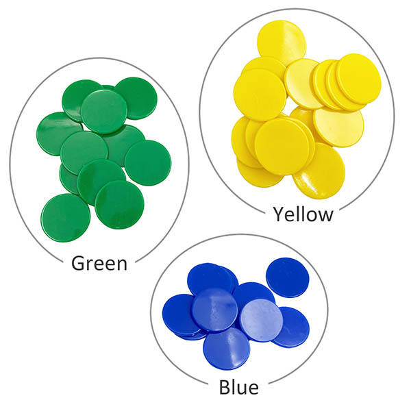 แผ่นพลาสติกสำหรับคณิตศาสตร์ ขนาด 1 นิ้ว 5 สี จำนวน 500 ชิ้นชื่อสินค้า