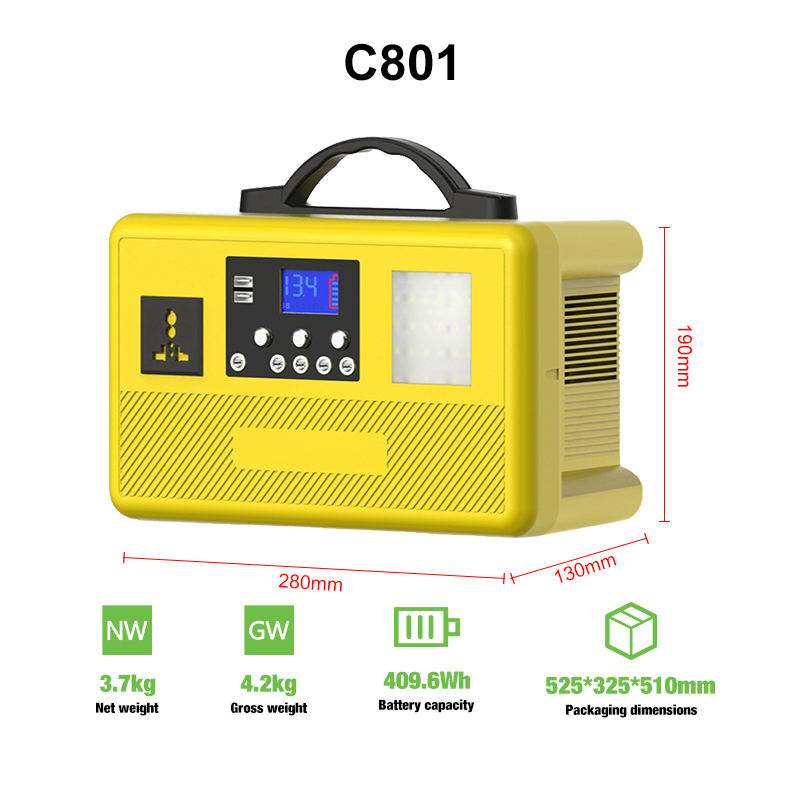 เครื่องกำเนิดไฟฟ้าพลังงานแสงอาทิตย์แบบพกพา 500W 409.6Wh สำหรับสถานการณ์ฉุกเฉิน ใช้สำหรับตั้งแคมป์และจ่ายไฟบ้าน สถานีไฟฟ้าพกพา