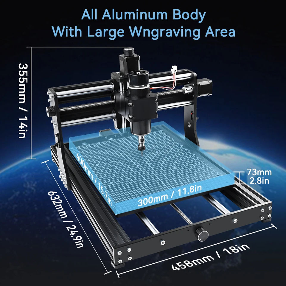 เครื่องเราเตอร์ CNC 500W รุ่น 4030 สำหรับโลหะ อลูมิเนียม ไม้, เครื่องกัด แกะสลัก ตัด ขนาด 400x300 มม. พร้อมแกนหมุน