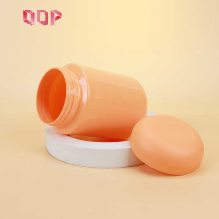 ขวดพลาสติก PET สีส้มขนาด 500 ซีซี 600 ซีซี 750 ซีซี สำหรับเก็บผงโปรตีน ลูกอม นมผง อาหารเสริม ฝาเกลียว ขายส่ง