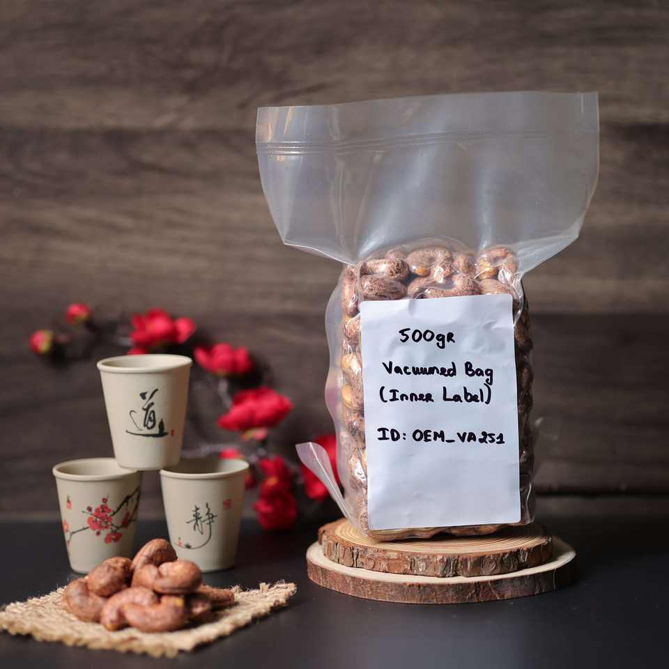 เม็ดมะม่วงหิมพานต์อบแห้งเวียดนามพรีเมียมบรรจุภัณฑ์แบบกำหนดเอง 500 กรัม บรรจุภัณฑ์สุญญากาศ - ผลิตในโรงงานของเรา รสชาติเนียนนุ่มเข้มข้น