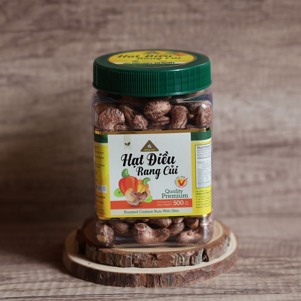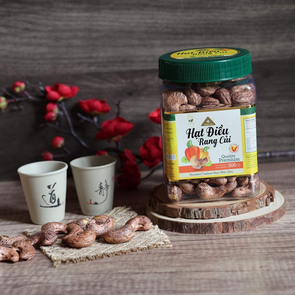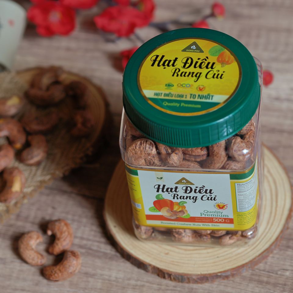 เม็ดมะม่วงหิมพานต์เวียดนามอบแบบไม่ปอกเปลือก ออร์แกนิค เกรดพรีเมียม W180 เนื้อเนียนนุ่ม ตราโรงงานตงฟู่ บรรจุในกระปุกสี่เหลี่ยม 500 กรัม โปรโมชั่นพิเศษ