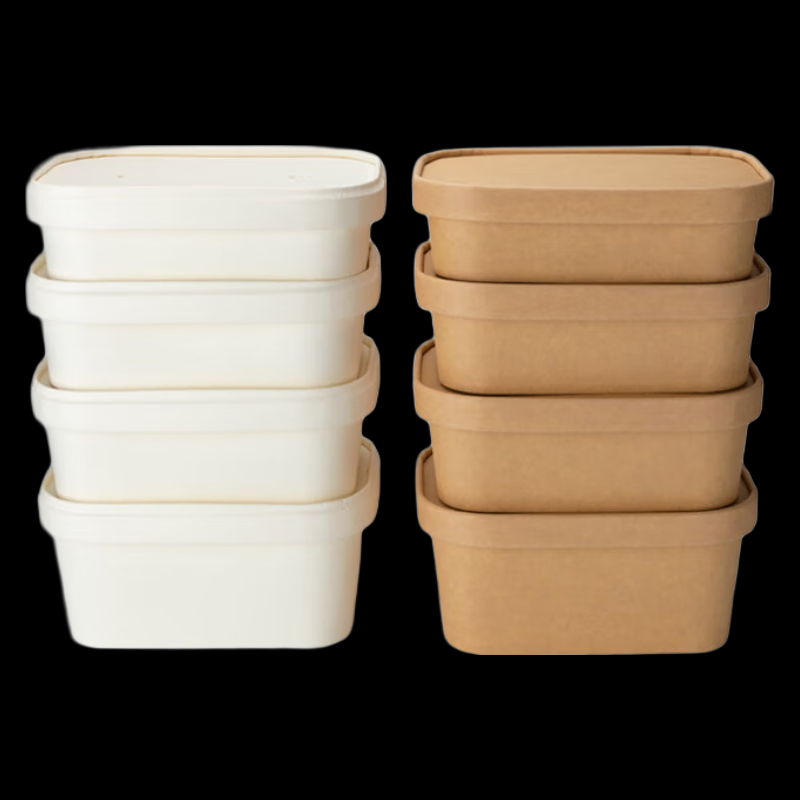 ชามสลัดทรงสี่เหลี่ยมขนาด 500 มล. 750 มล. 1100 มล. สีขาวและสีน้ำตาลพร้อมฝาปิด