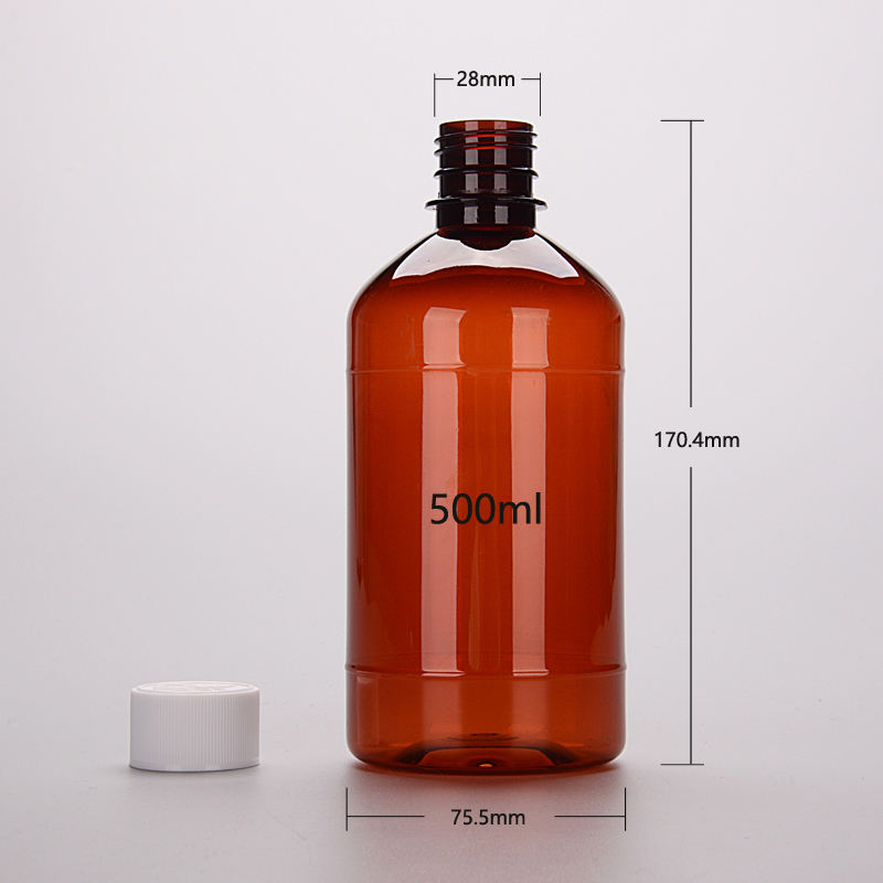 ขวดพลาสติก PET สีเหลืองอำพันขนาด 500 มล. พร้อมฝาเกลียว สำหรับบรรจุยาเหลวและน้ำยาสำหรับรับประทาน ขายส่งแบบ OEM