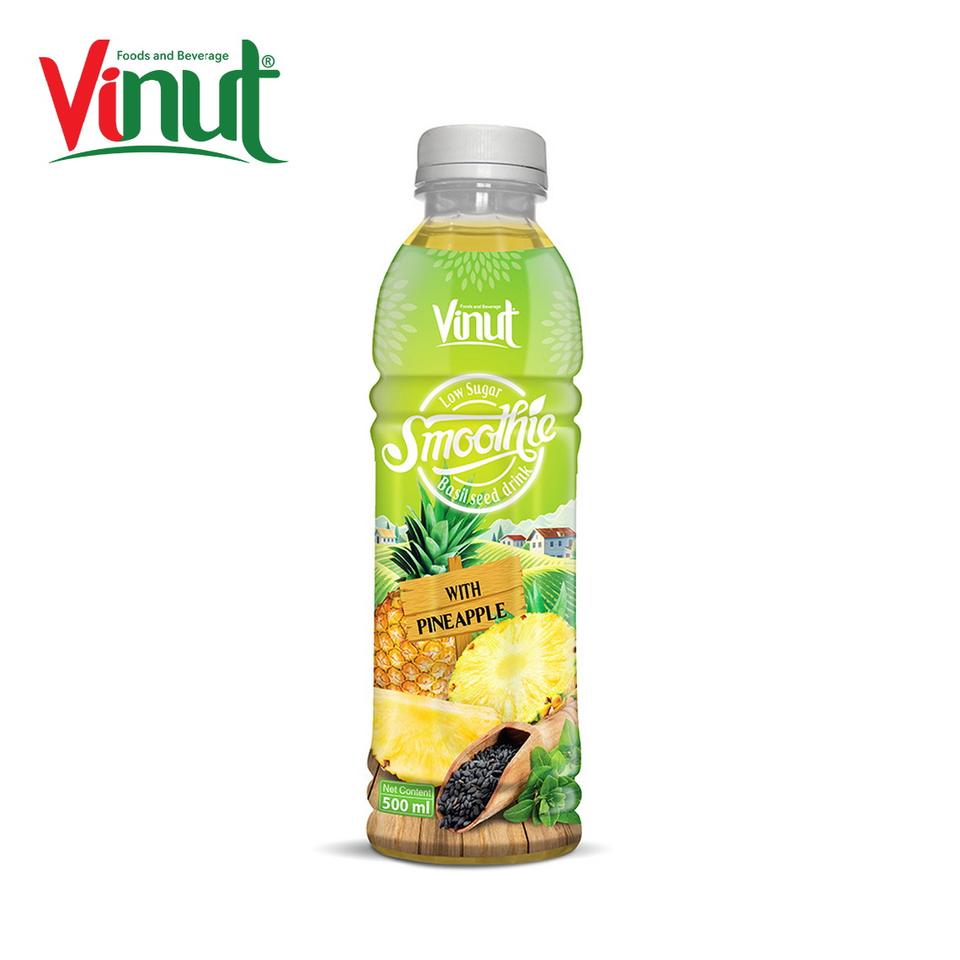 เครื่องดื่มเมล็ดโหระพา500มล. พร้อมน้ำปั่นสับปะรดน้ำมะพร้าวออร์แกนิกน้ำตาลต่ำน้ำมะพร้าวไทย