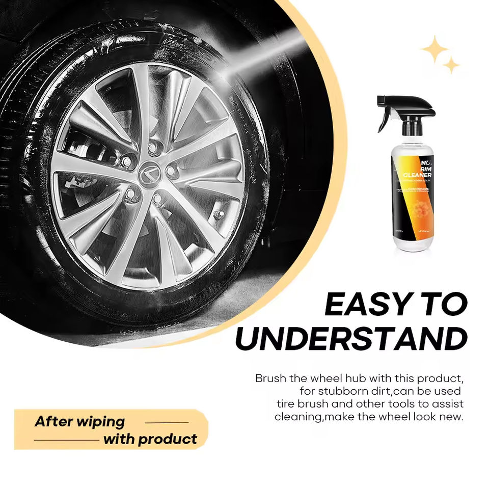 ผลิตภัณฑ์ล้างรถขนาด500มล. น้ำยาทำความสะอาดขอบล้อสามารถขจัดคราบสกปรกและน้ำมันที่ตกค้างจากยางสำหรับรายละเอียดรถยนต์ได้อย่างสมบูรณ์
