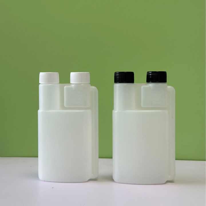 ขวดจ่ายยาสองชั้นแบบคู่เครื่องจ่ายพลาสติก HDPE ขนาด500มล.