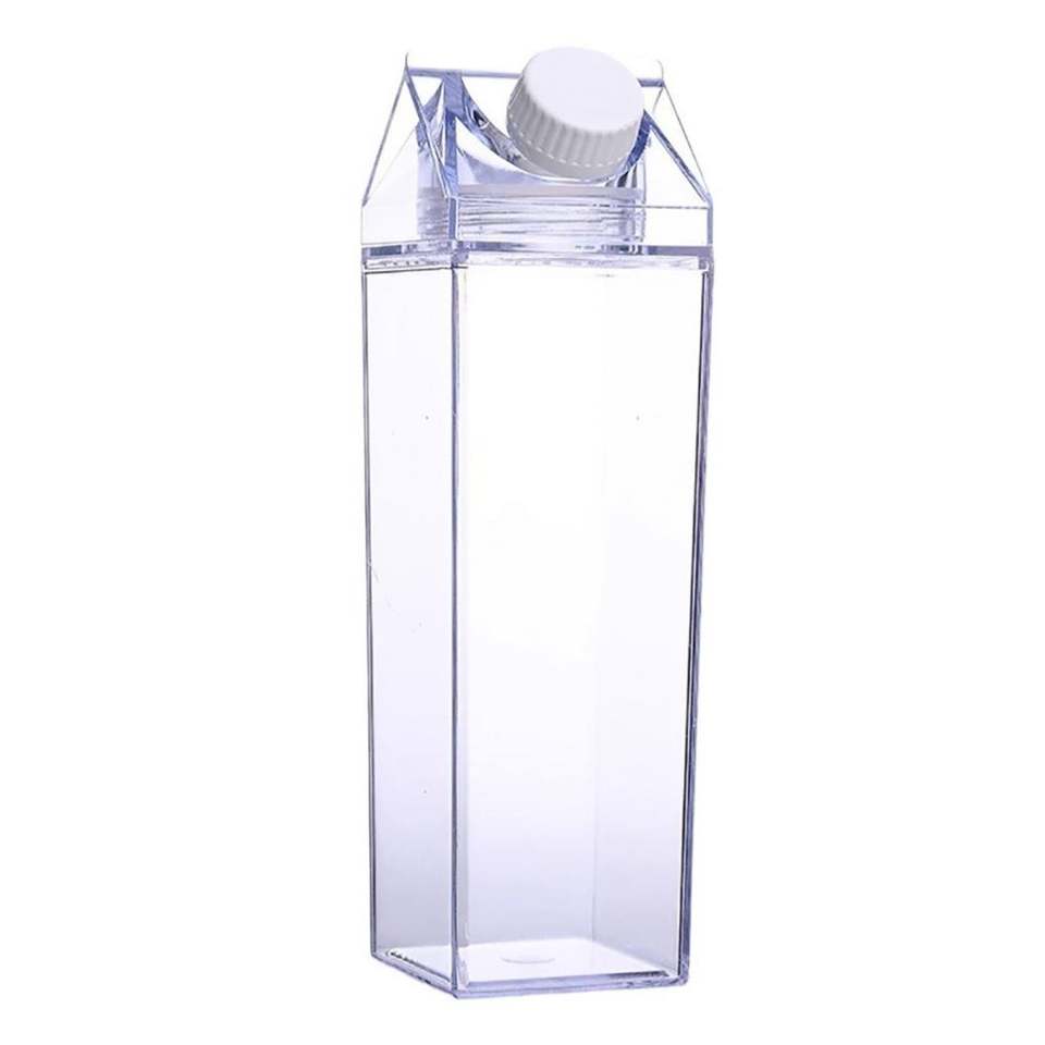 ขวดบรรจุภัณฑ์สำหรับงานปาร์ตี้รูปทรงกล่องนมพลาสติกใสขนาด 500 มล. ป้องกันการรั่วซึม พร้อมฝาปิด ใช้กับเครื่องล้างจานได้