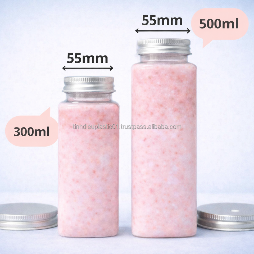 ขวด PET ใสทรงเหลี่ยม ขนาด 500 มล. รุ่น VD500-33 พร้อมฝาเกลียวอะลูมิเนียม เกรดสำหรับอาหาร สำหรับเครื่องดื่ม ผลิตในโรงงานเวียดนาม