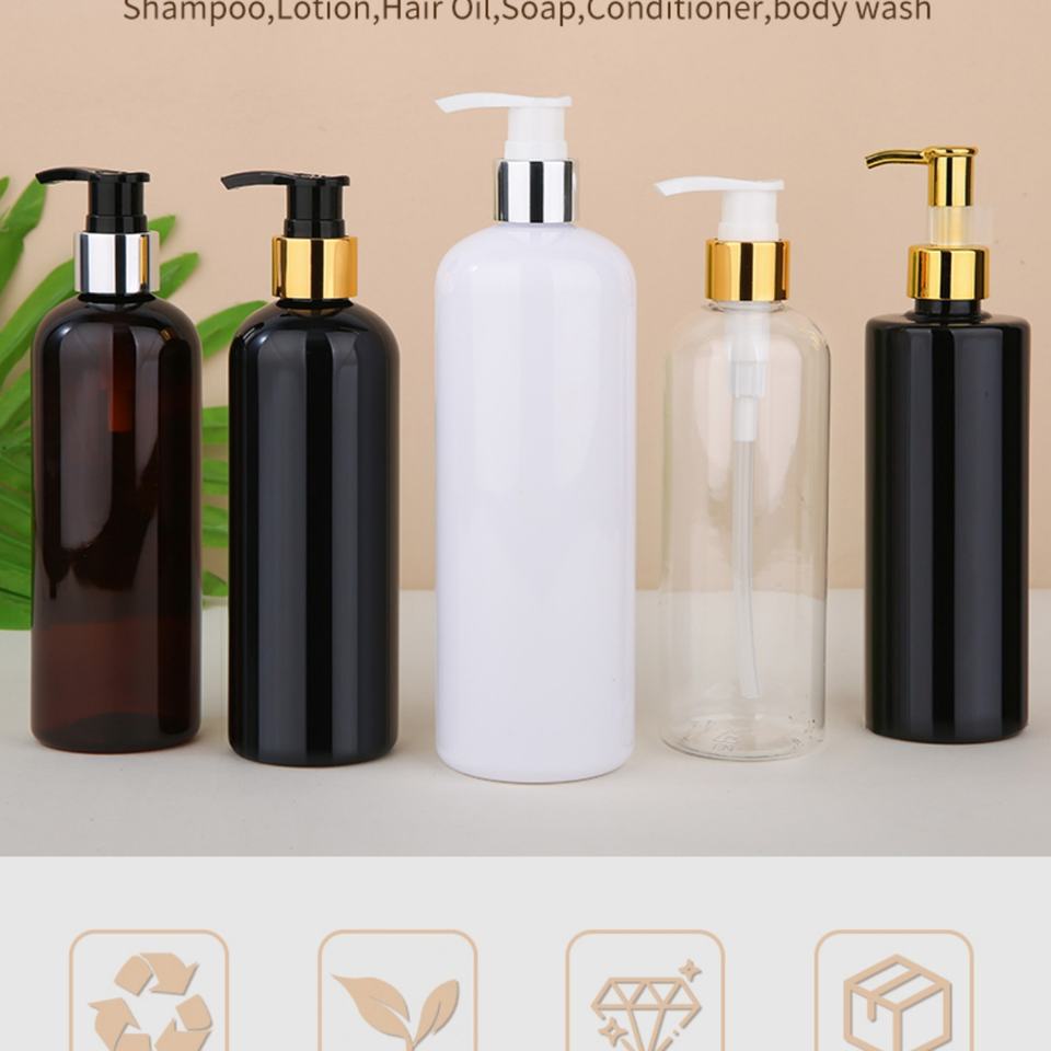 ขวดปั๊มโลชั่นแชมพูขนาด 500 มล. พร้อมฝาอลูมิเนียมสีทอง ขวดพลาสติกสำหรับเครื่องสำอาง