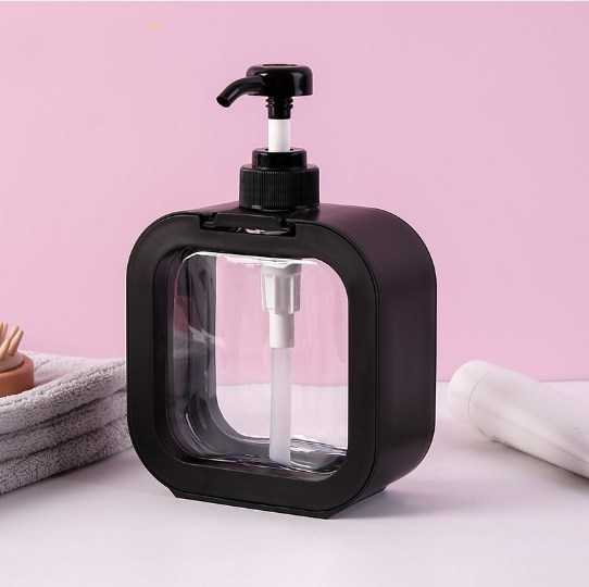 ขวดสบู่เหลวทรงกลมสีดำขนาด 500 มล. เป็นมิตรกับสิ่งแวดล้อม บรรจุภัณฑ์พลาสติกสำหรับเครื่องสำอาง พร้อมหัวปั๊ม สำหรับครีมทาหน้า โลชั่นทาผิว เซรั่มบำรุงผิว
