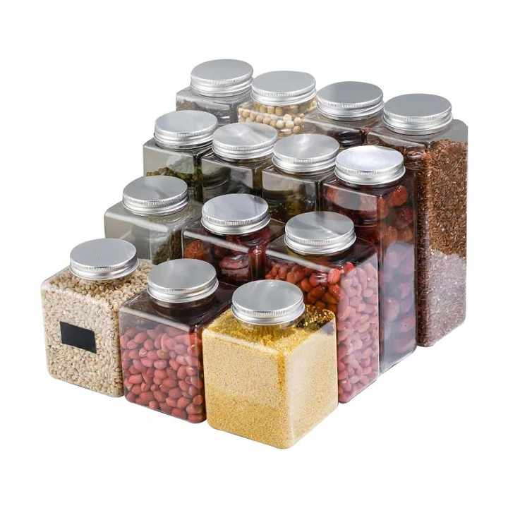 โหลพลาสติกใสทรงสี่เหลี่ยมขนาด500มล. พร้อมฝาเกลียวสำหรับใส่ชากาแฟโถเก็บอาหารในห้องครัว