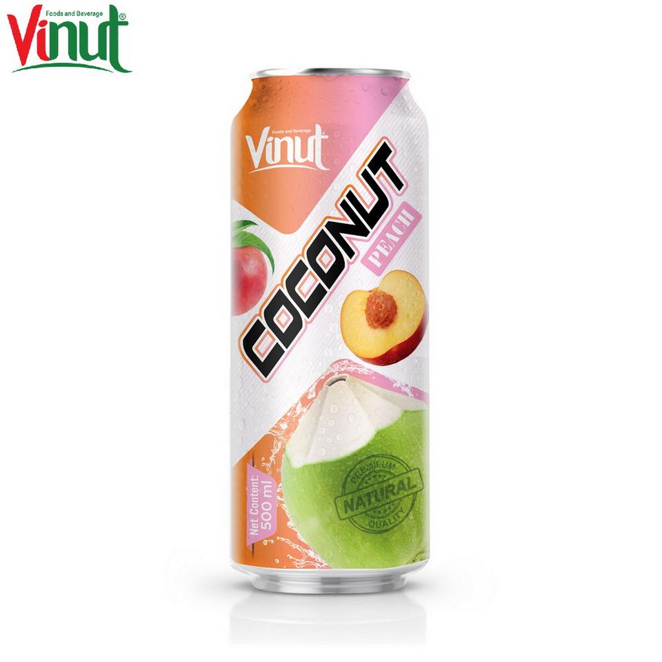 น้ำมะพร้าวกระป๋อง (กระป๋อง) 500มล. กับลูกพีชน้ำตาลกลูโคสผลไม้แท้ส่งออกฉลากส่วนตัว