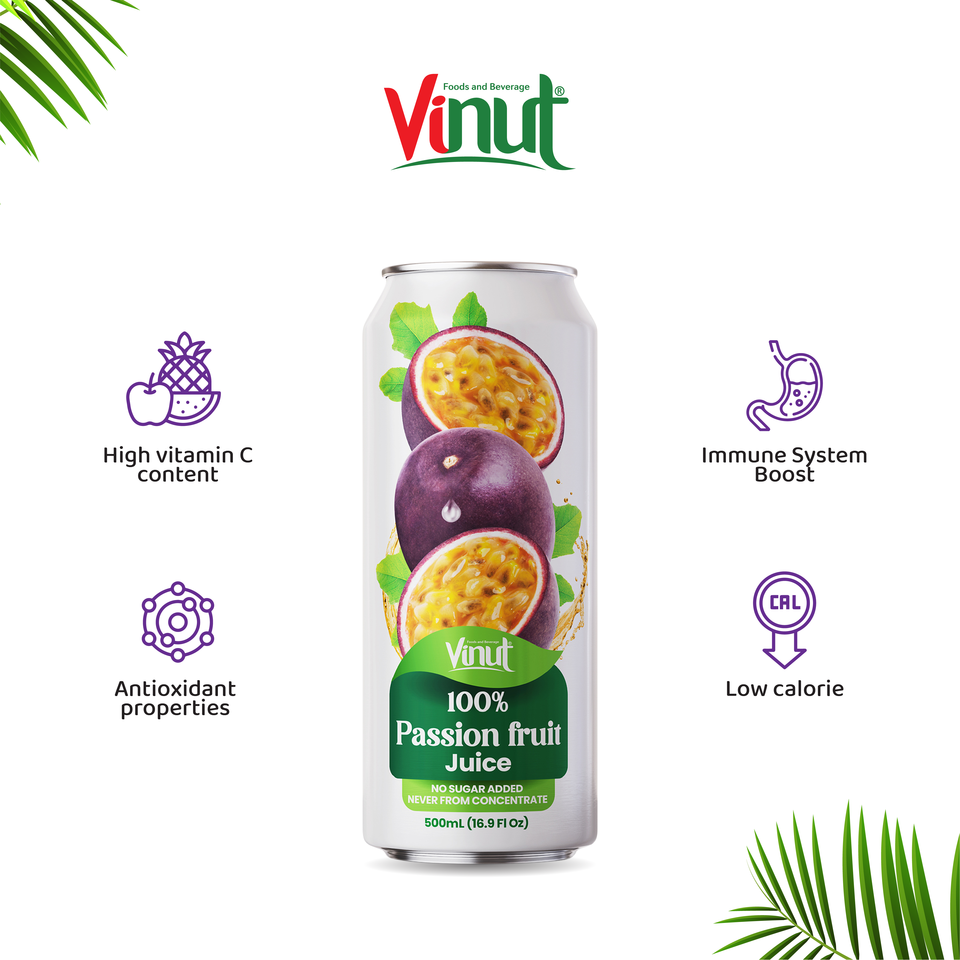 500ml VINUT NFC 100% Pure Passion Juice Drink No Sugar Added, Free Sample, Ready To Ship (OEM, ODM)