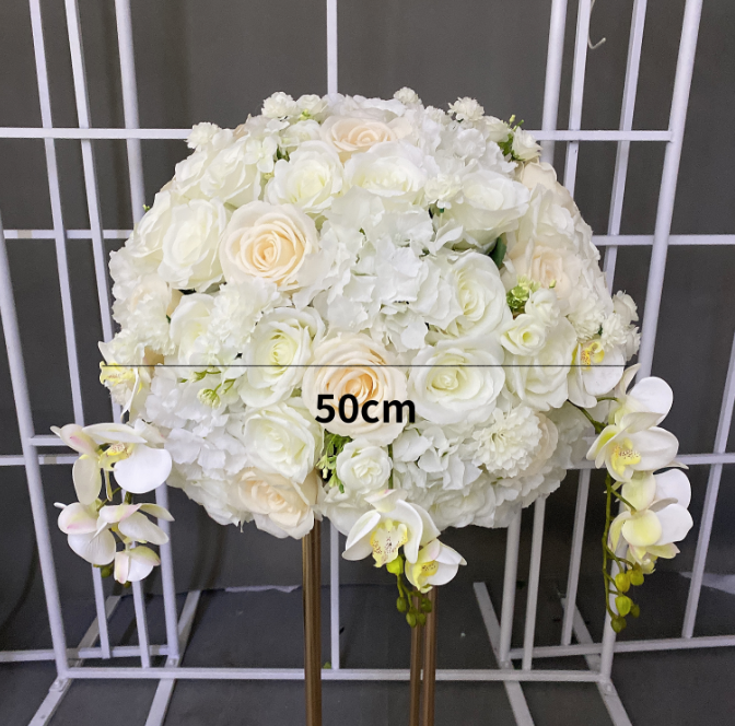 ลูกบอลดอกไม้สีขาวขนาด50ซม. การแสดงหน้าต่างระดับไฮเอนด์ลูกบอลดอกไม้ประดิษฐ์สีขาวโรแมนติก