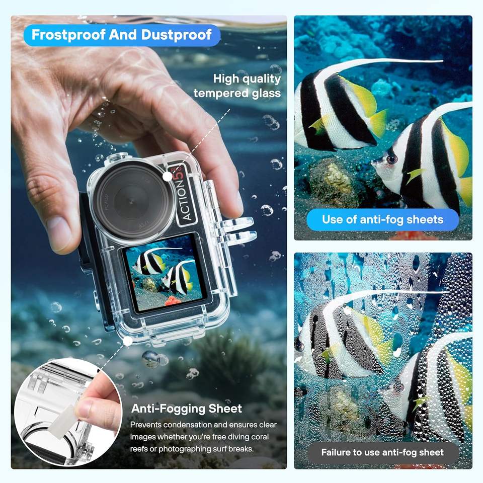 เคสป้องกันการเกิดฝ้ากันน้ำ50ม./164FT สำหรับแอ็คชั่น5โปร4/3ถ่ายภาพใต้น้ำอุปกรณ์ดำน้ำ