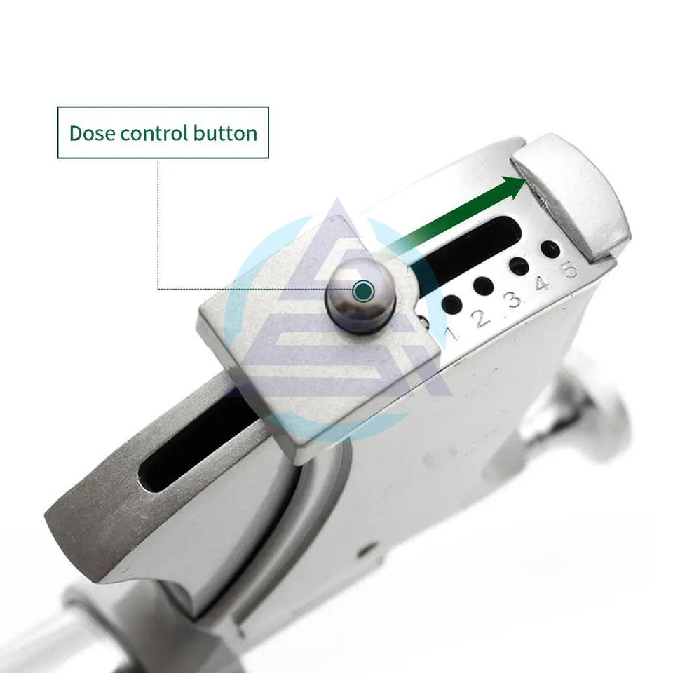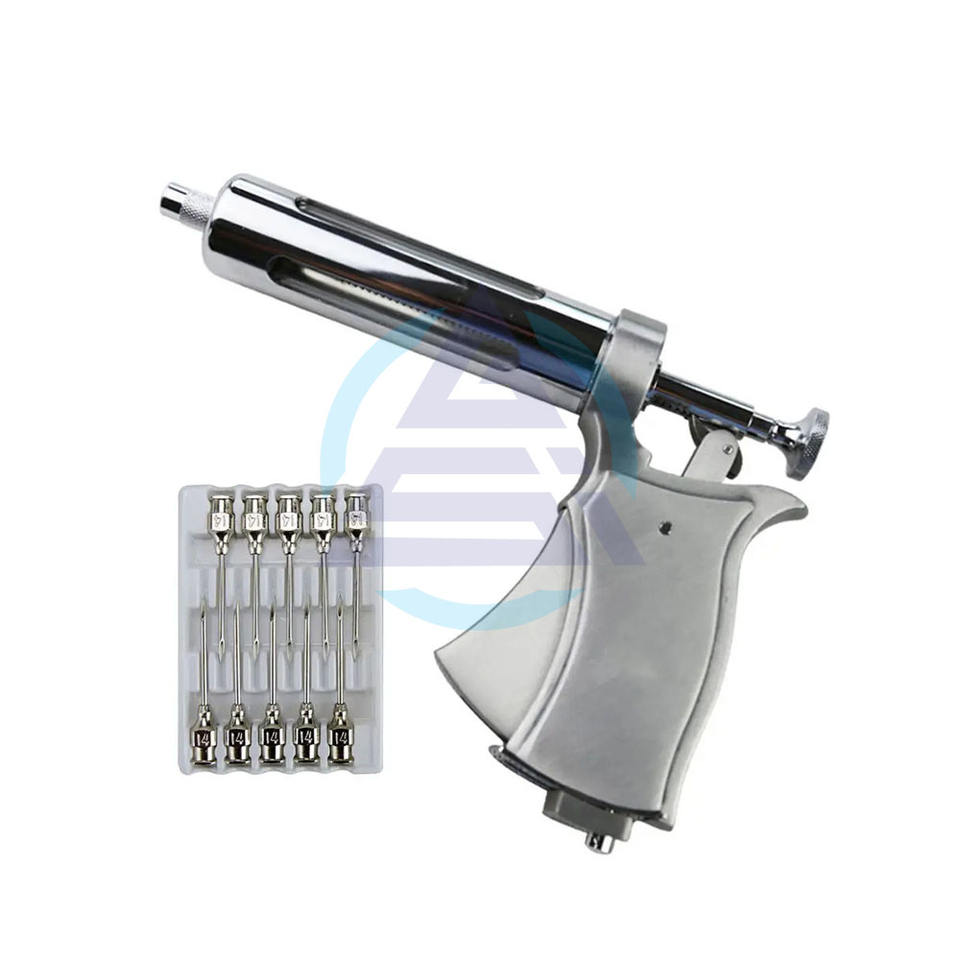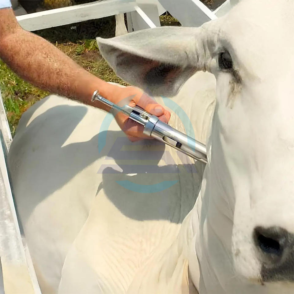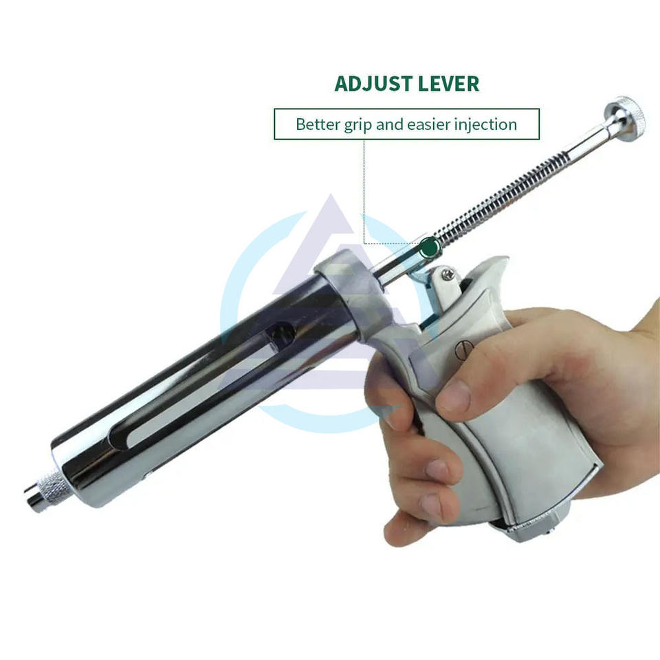 กระบอกฉีดยาสัตว์แบบกึ่งอัตโนมัติปรับได้ต่อเนื่อง ขนาด 50 มล. ทำจากโลหะ สำหรับฉีดยาสัตว์ เช่น ม้า แกะ วัว หมู และปศุสัตว์อื่นๆ