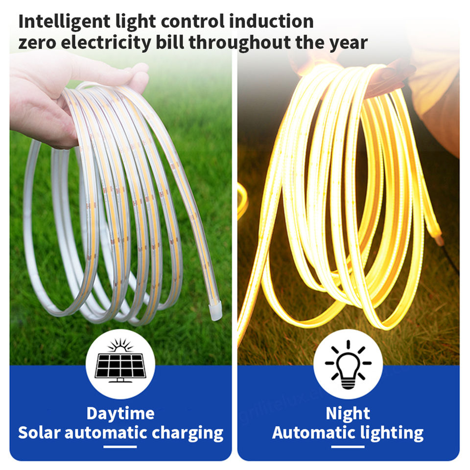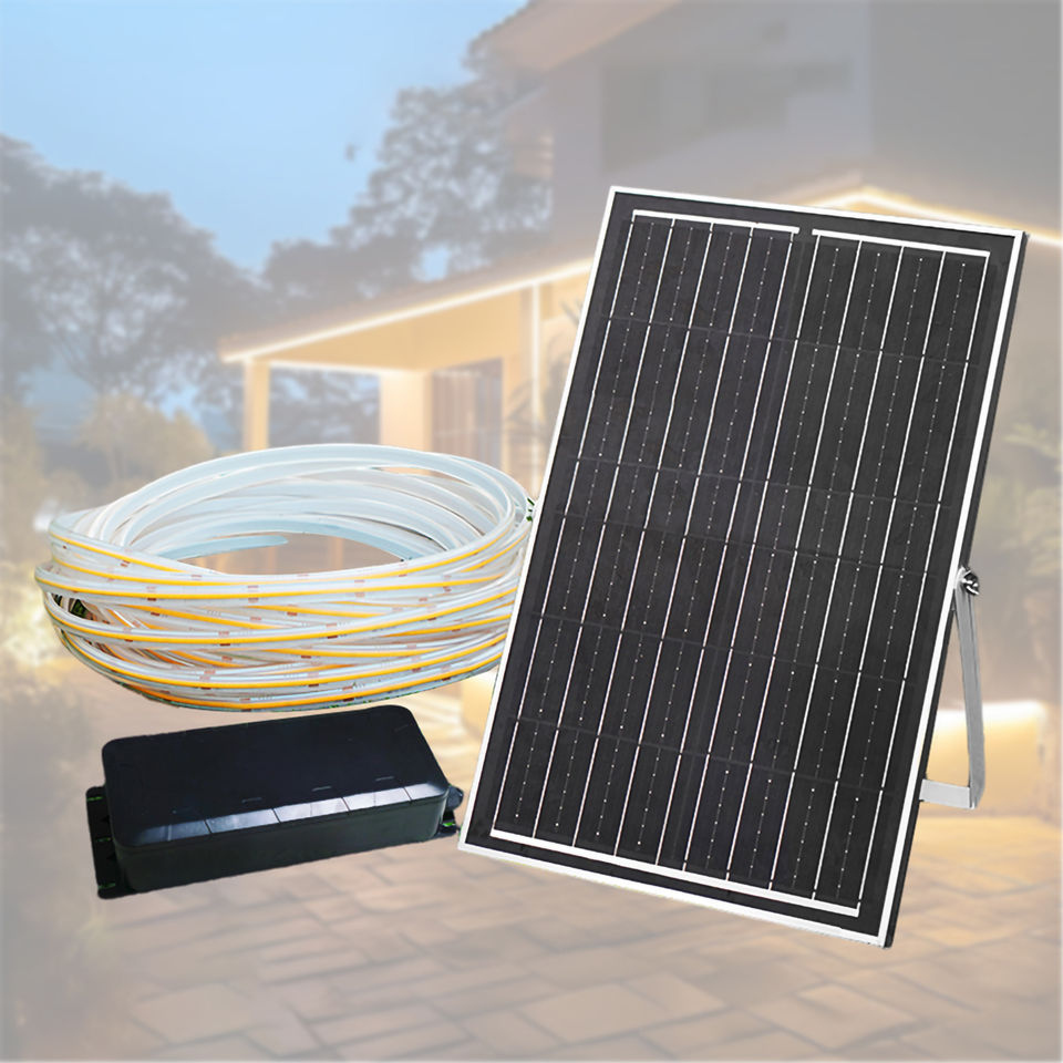 ไฟโซลาร์แบบตัดได้ 50 เมตร สำหรับตกแต่งลานบ้าน กันน้ำ พร้อมแผงโซลาร์เซลล์ ไฟนีออน LED แบบยืดหยุ่น