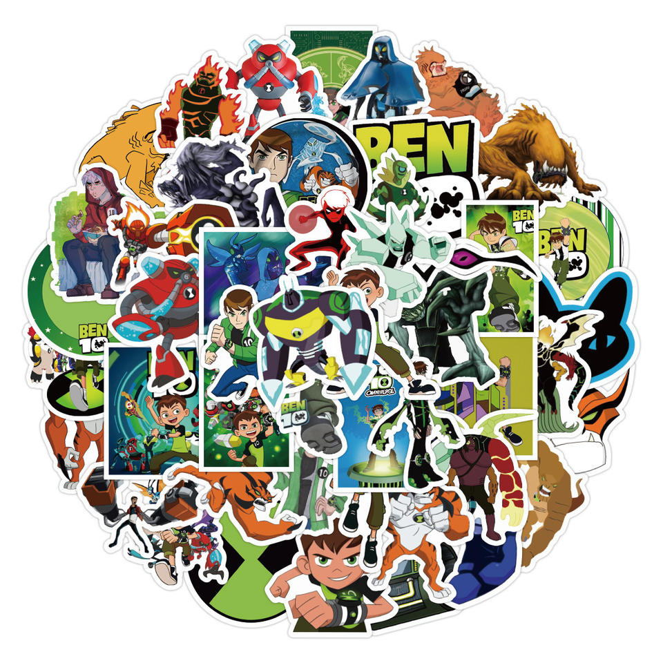 50ชิ้นการ์ตูนคลาสสิกเบน10เด็กของเล่นตกแต่งแล็ปท็อปหน้าต่างบ้านโรมกันน้ำที่กำหนดเองการ์ตูนป้ายสติกเกอร์