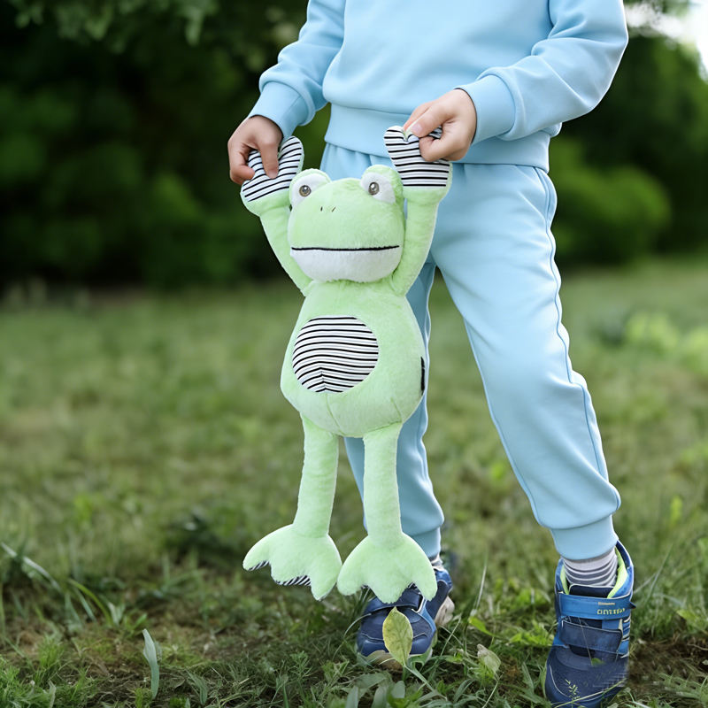 ตุ๊กตากบยิ้มน่ารัก ลายทาง ดีไซน์ไม่ซ้ำใคร ราคาโรงงาน MOQ ต่ำ 50 ชิ้น