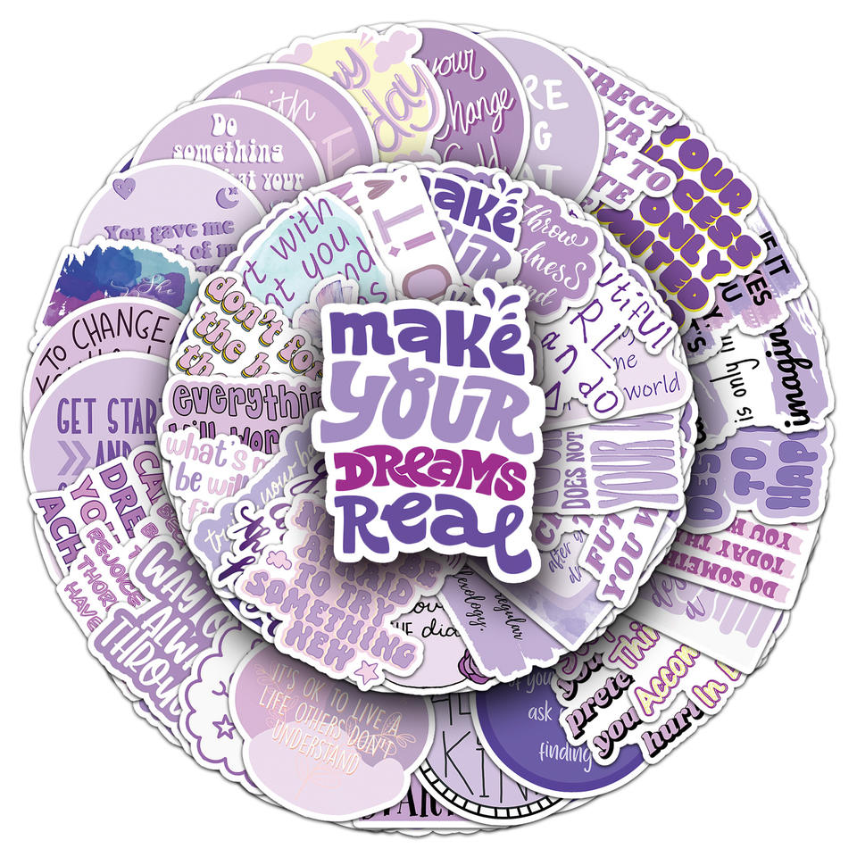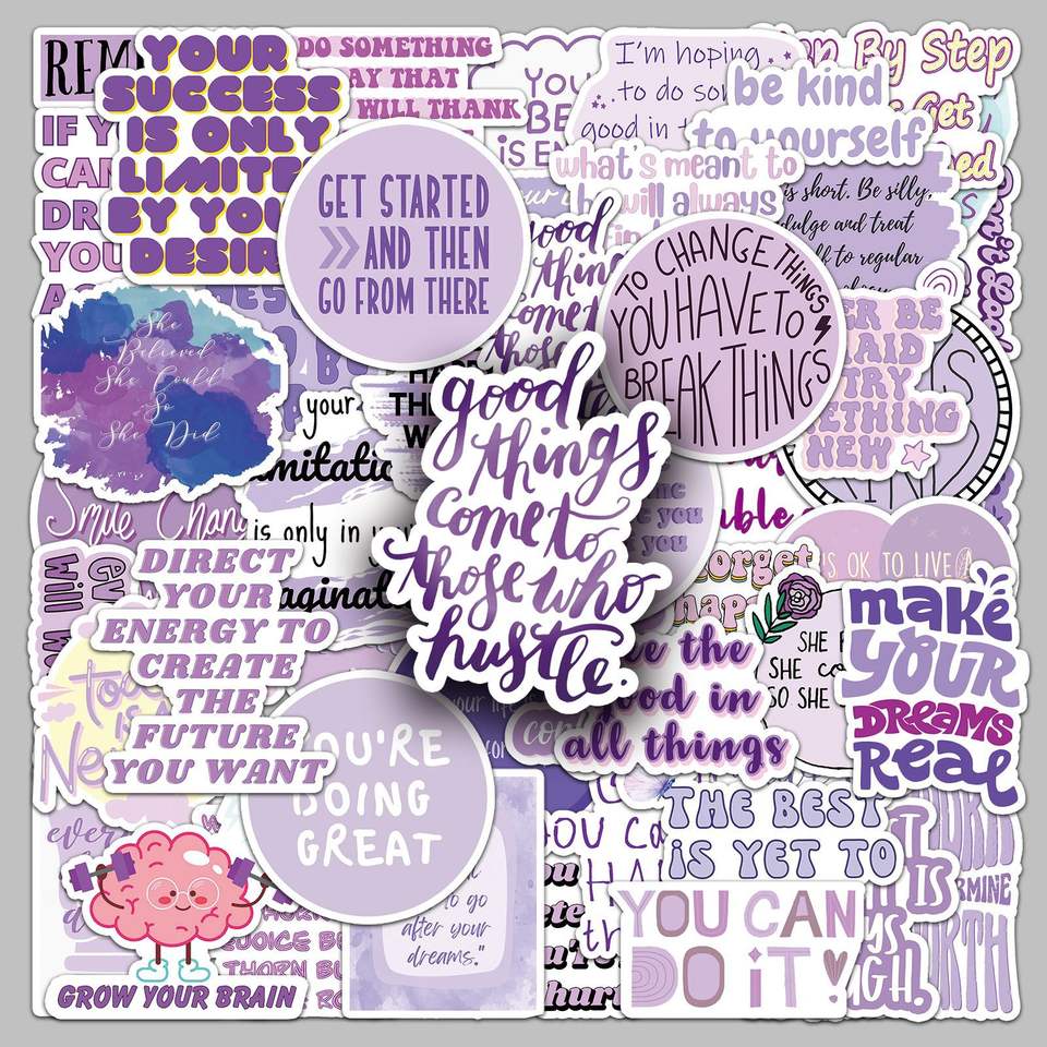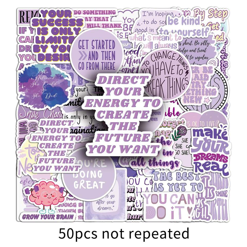50ชิ้นสีม่วงคำสร้างแรงบันดาลใจวลีสร้างแรงบันดาลใจสีชมพูบวกพูดสติ๊กเกอร์สำหรับตกแต่ง