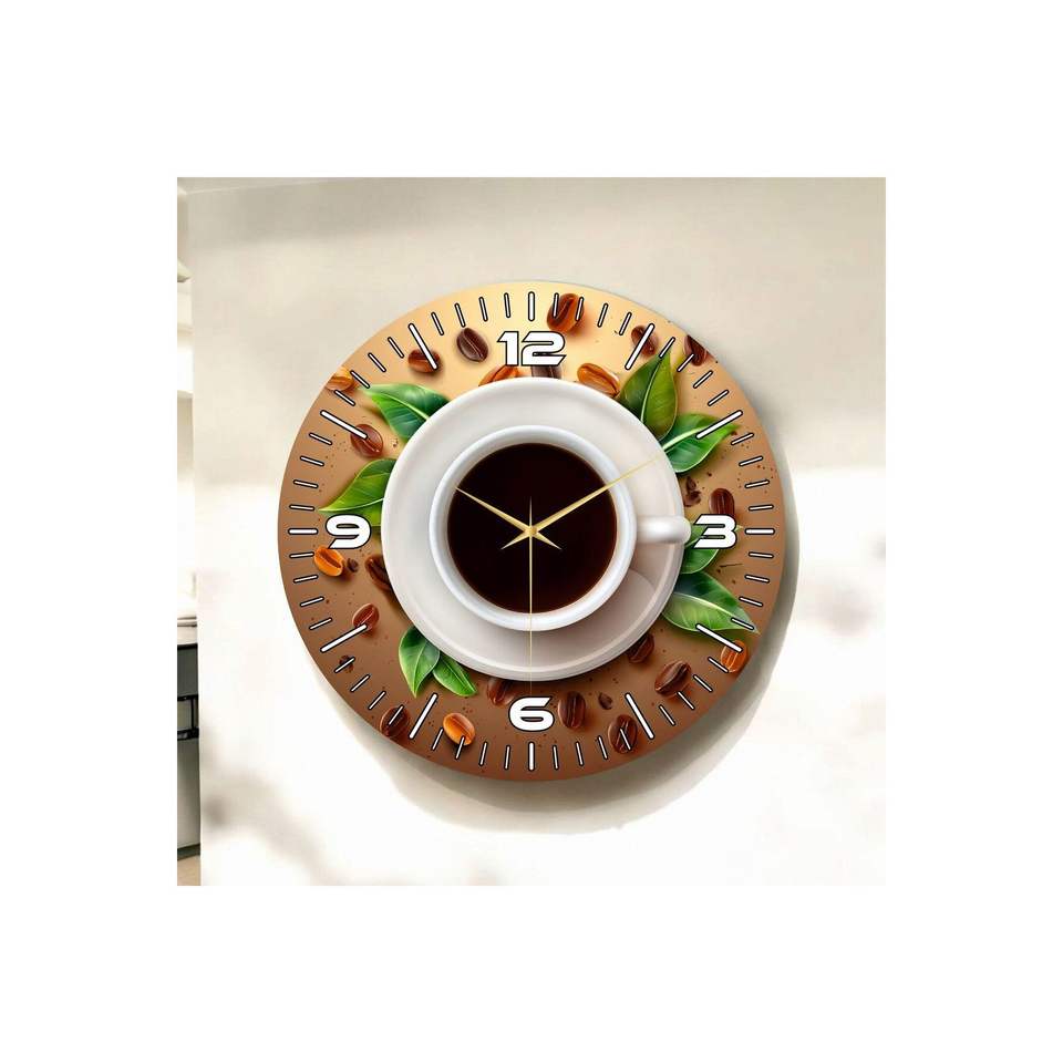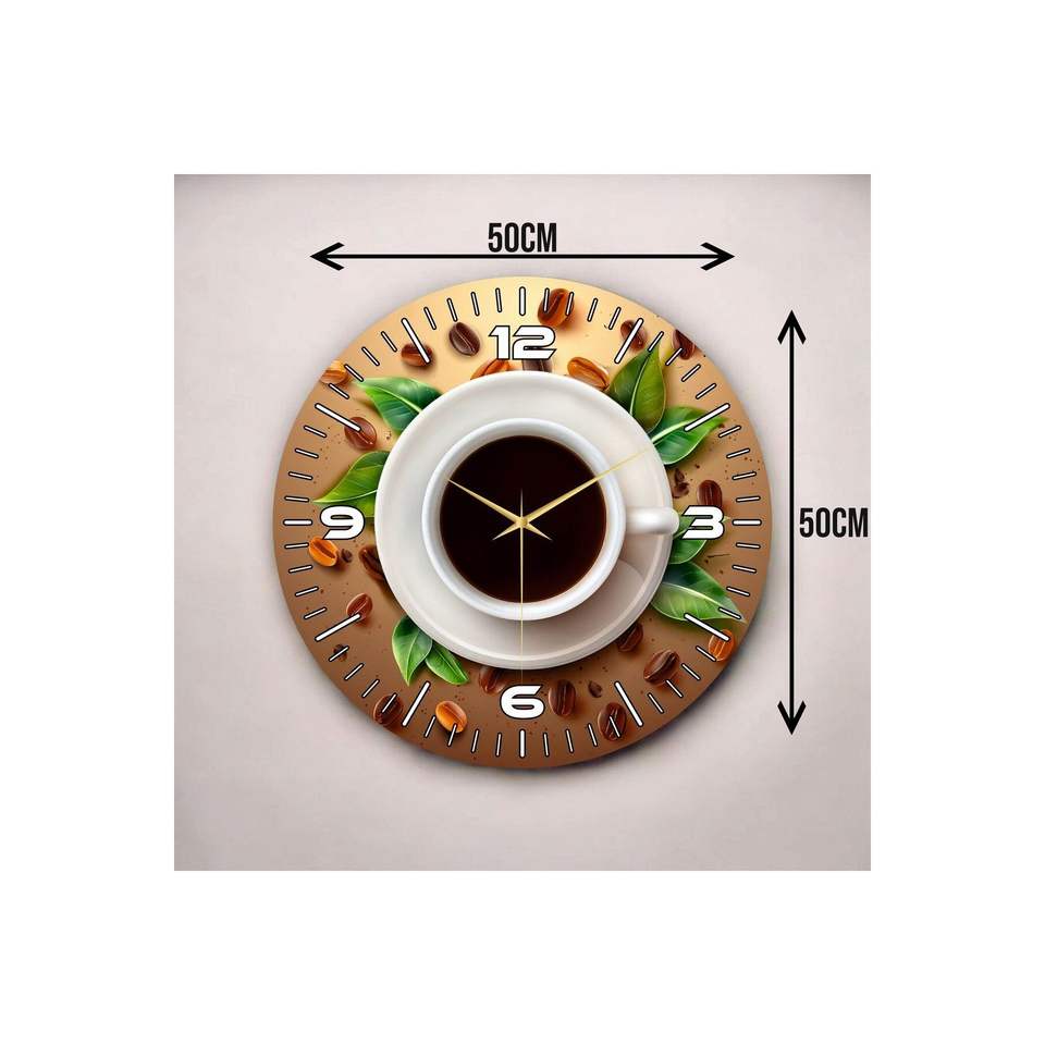 นาฬิกาแขวนผนังไม้เงียบขนาด50ซม. พิมพ์ลายกาแฟพร้อมรูปแบบถั่วเป็นของขวัญที่มีหมายเลข