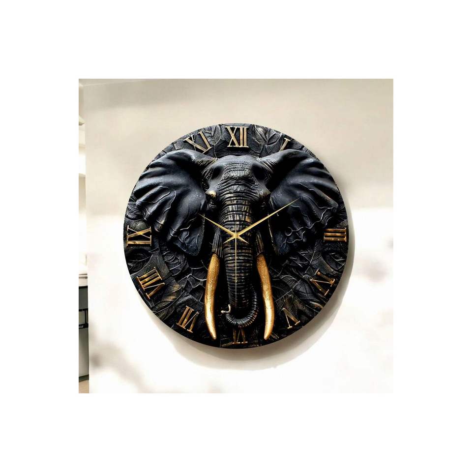 นาฬิกาแขวนผนังไม้เงียบ50ซม. ลายนูนรูปสัตว์ช้างและพิมพ์สีสันสดใสสินค้าของขวัญ