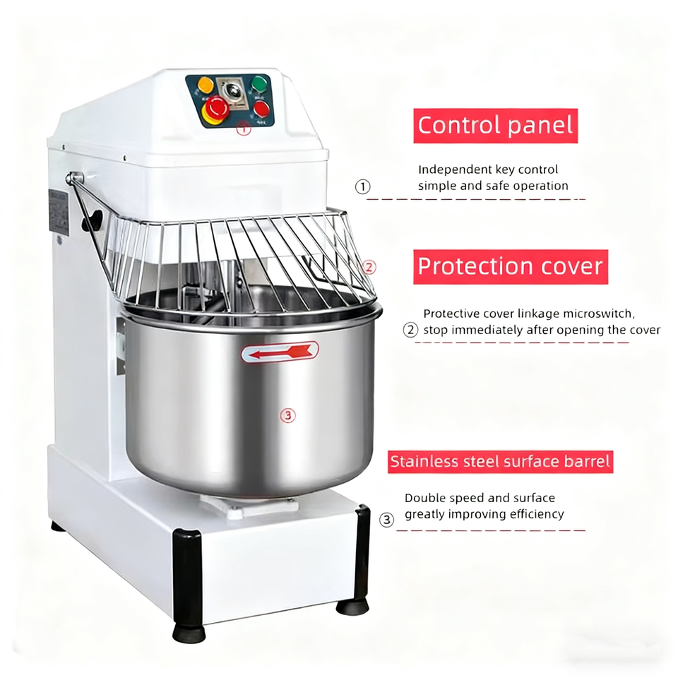 เครื่องผสมแป้งอัตโนมัติขนาด 50 กก. สำหรับเชิงพาณิชย์ พร้อมมอเตอร์ สแตนเลสเกรดอาหาร รับประกัน 1 ปี