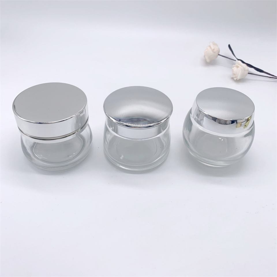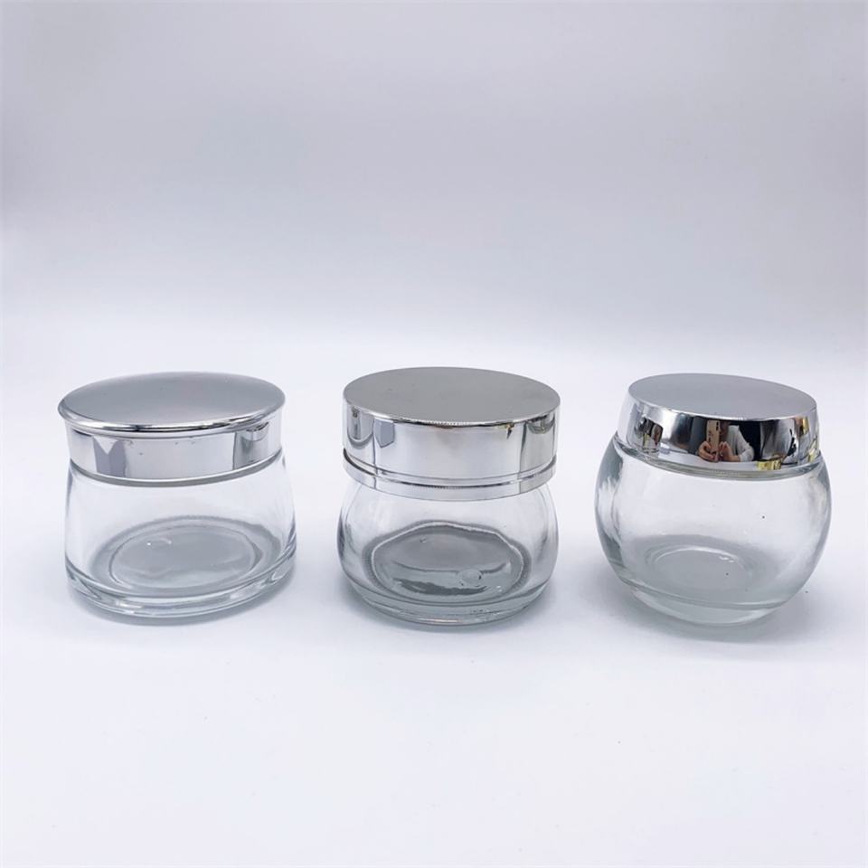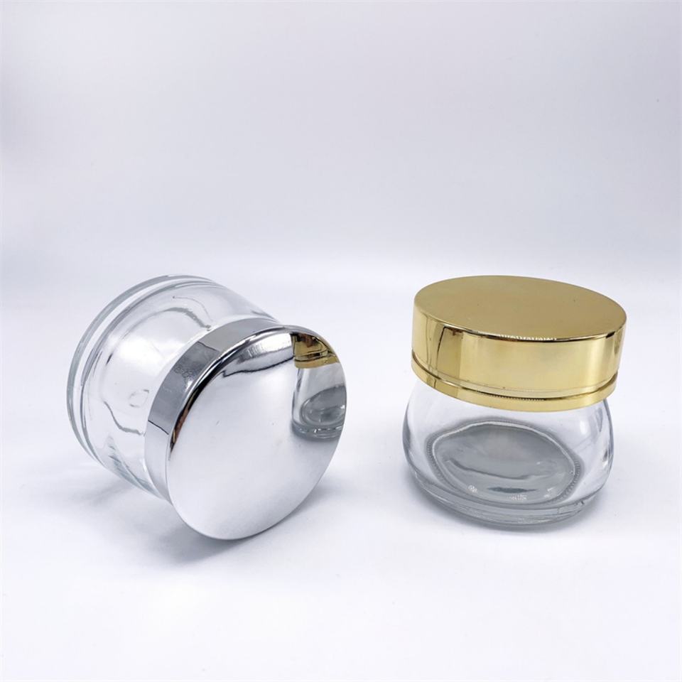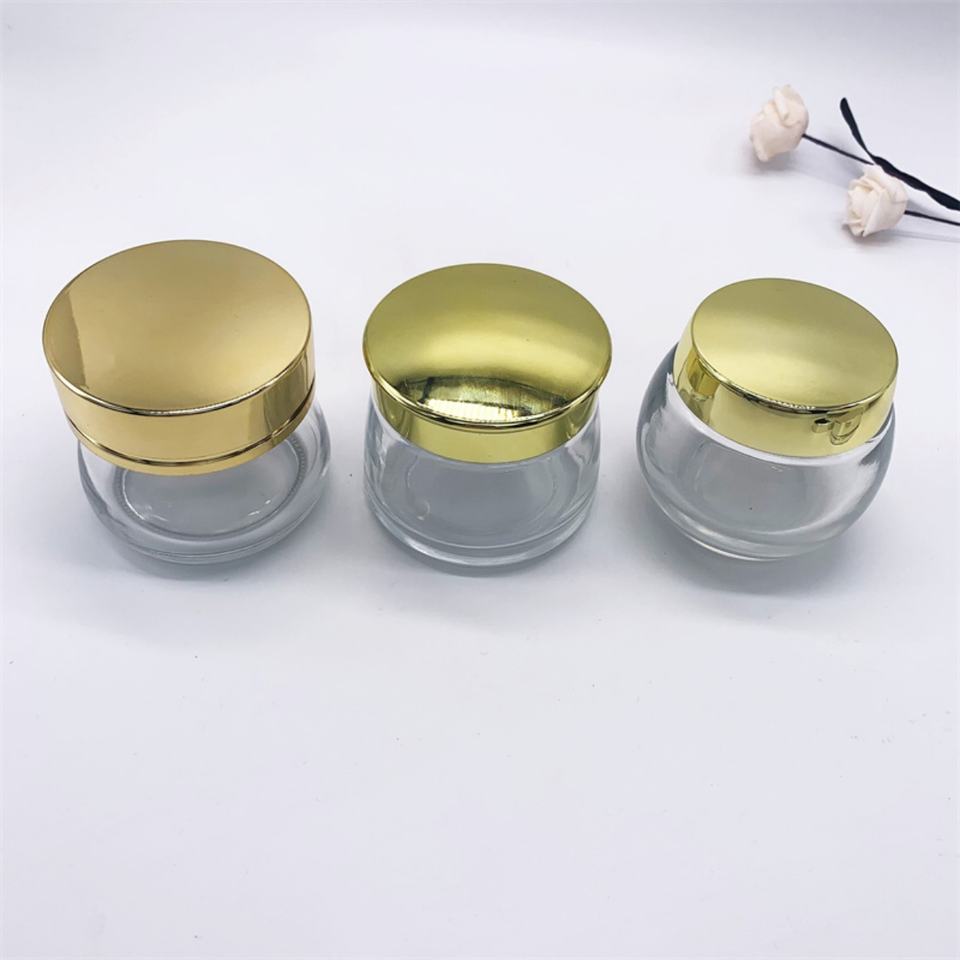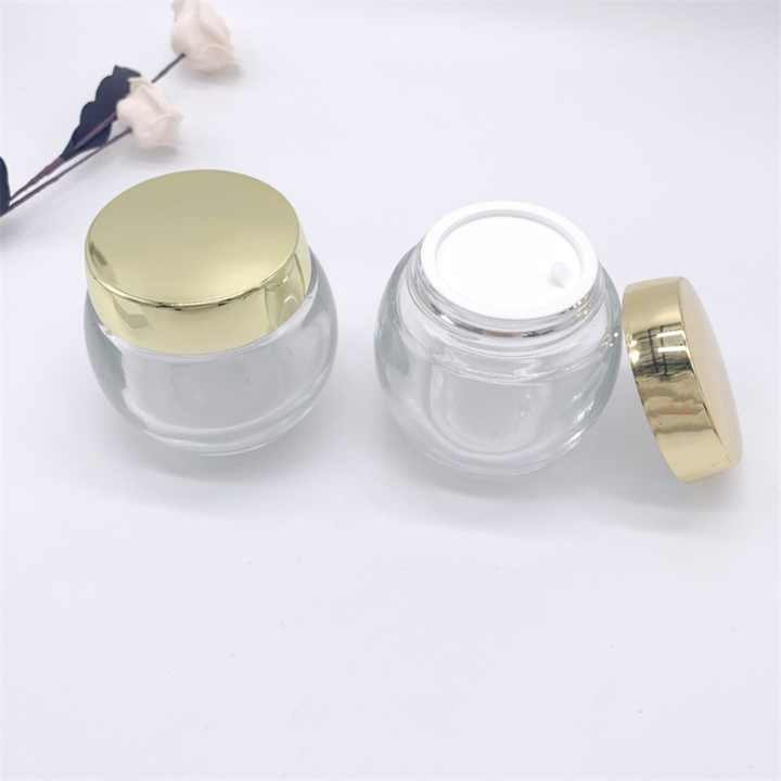 ขวดแก้วทรงกลมสำหรับเครื่องสำอางขนาด 50 มล. 100 มล. ใส่ครีมบำรุงผิว สครับขัดผิว ฝาสีทอง