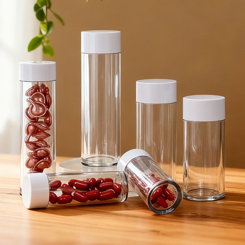 ขวดพลาสติก PET หนา 50 มล. 80 มล. 100 มล. สำหรับเครื่องสำอาง ขวดบรรจุเซรั่มแคปซูล น้ำมันเอสเซนส์ คุณภาพสูง พร้อมฝาเกลียว