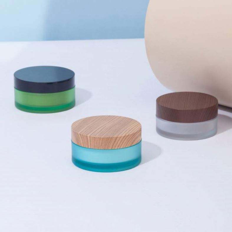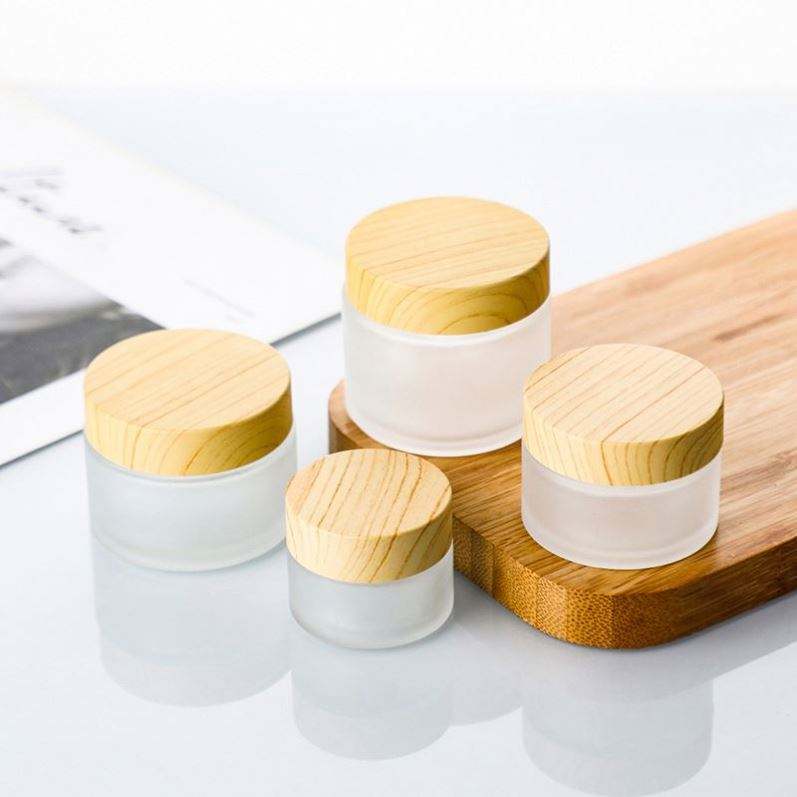ขวดแก้วโบโรซิลิเกตฝ้าขนาด 50 มล. พร้อมฝาไม้ไผ่สีดำด้าน ขวดบรรจุภัณฑ์สำหรับเครื่องสำอางและผลิตภัณฑ์ดูแลผิว ฝาเกลียว