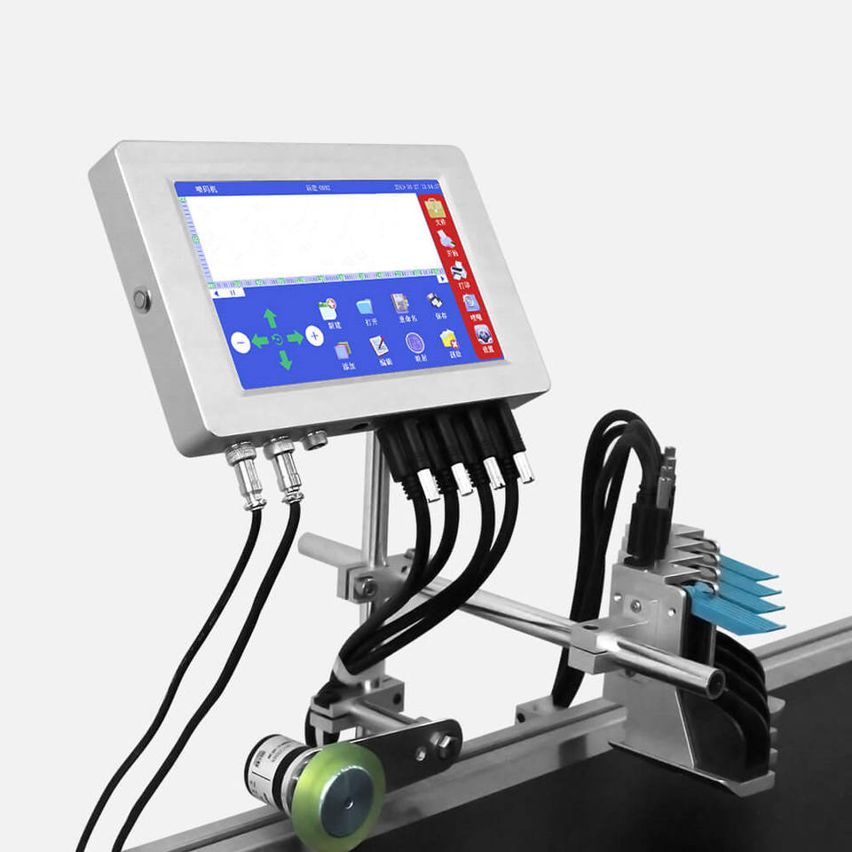 เครื่องพิมพ์อิงค์เจ็ทอัตโนมัติหัวคู่ขนาด50มม. 7นิ้วเครื่องพิมพ์โลโก้รูปภาพแบบคงที่รหัสวันที่กระดาษพิมพ์อิงค์เจ็ท