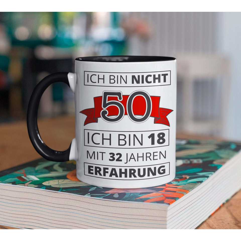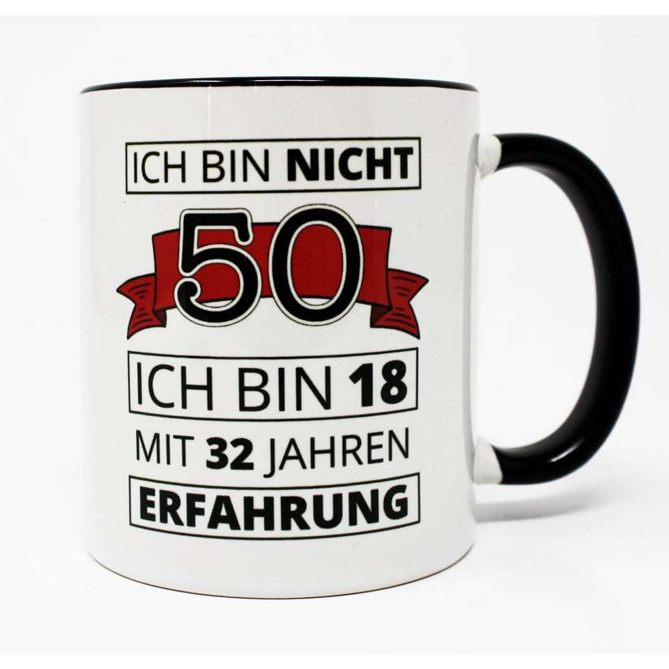 แก้วเซรามิกสองชั้นลายพิเศษสำหรับวันเกิดครบรอบ 50 ปี ใช้กับเครื่องล้างจานและไมโครเวฟได้ พร้อมดีไซน์ "ฉันอายุไม่ใช่ 50" และช้อน