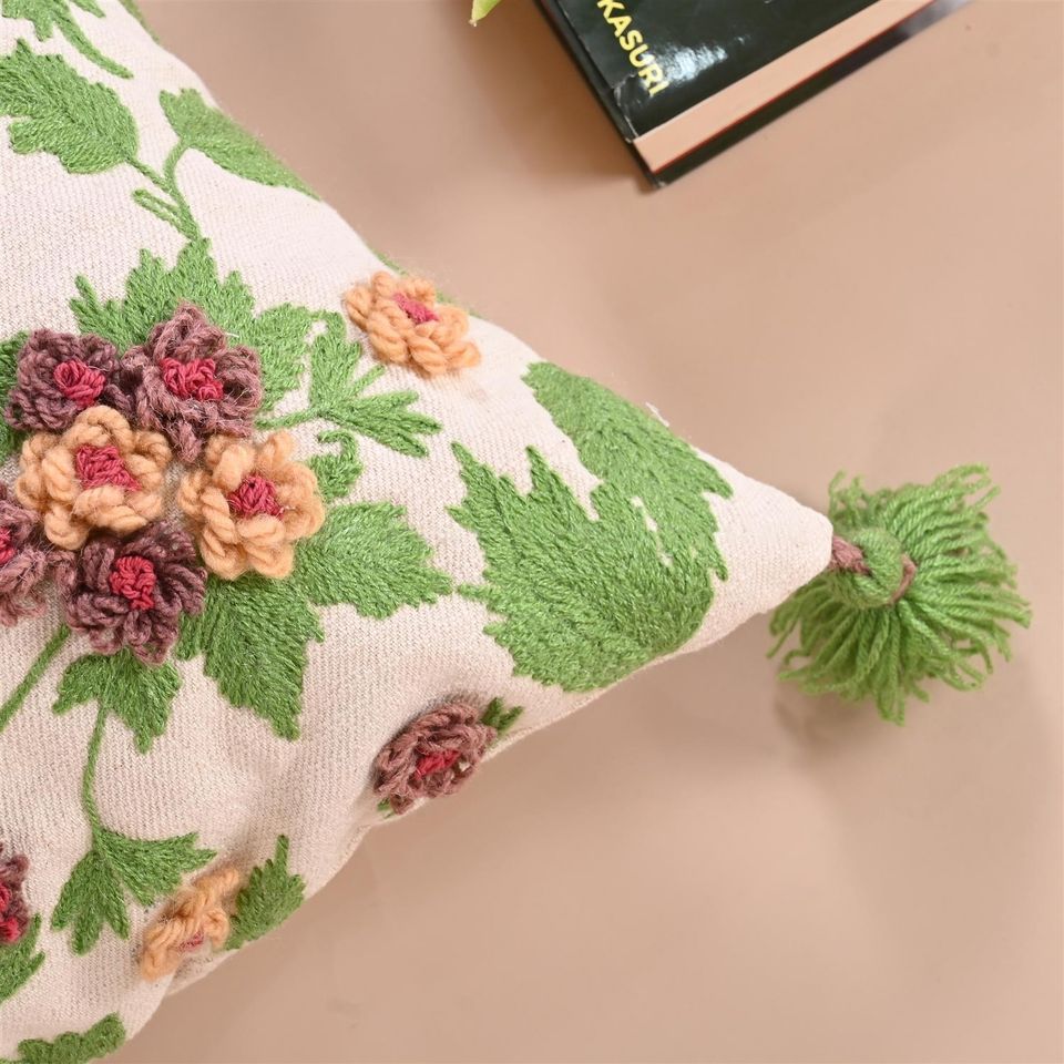 ปลอกหมอนอิงผ้าฝ้ายปักลายดอกไม้สีเขียวขนาด50x50ซม. สำหรับห้องนั่งเล่น