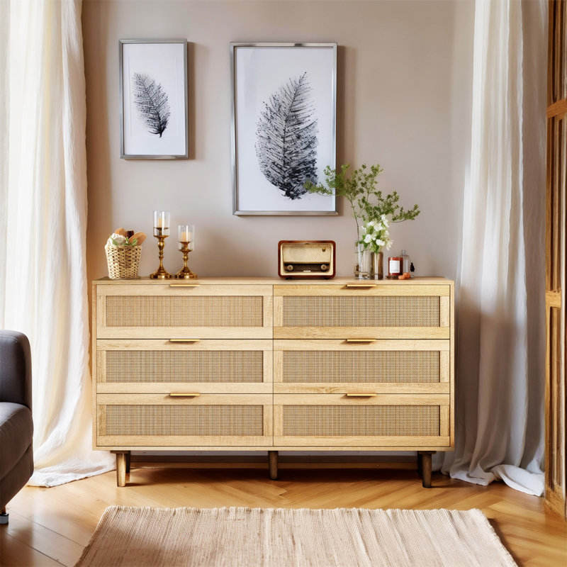 51.18 "ตู้เก็บของหวาย6ลิ้นชักตู้ห้องนั่งเล่นหรูหราพร้อมลิ้นชักหวายที่ทนทาน