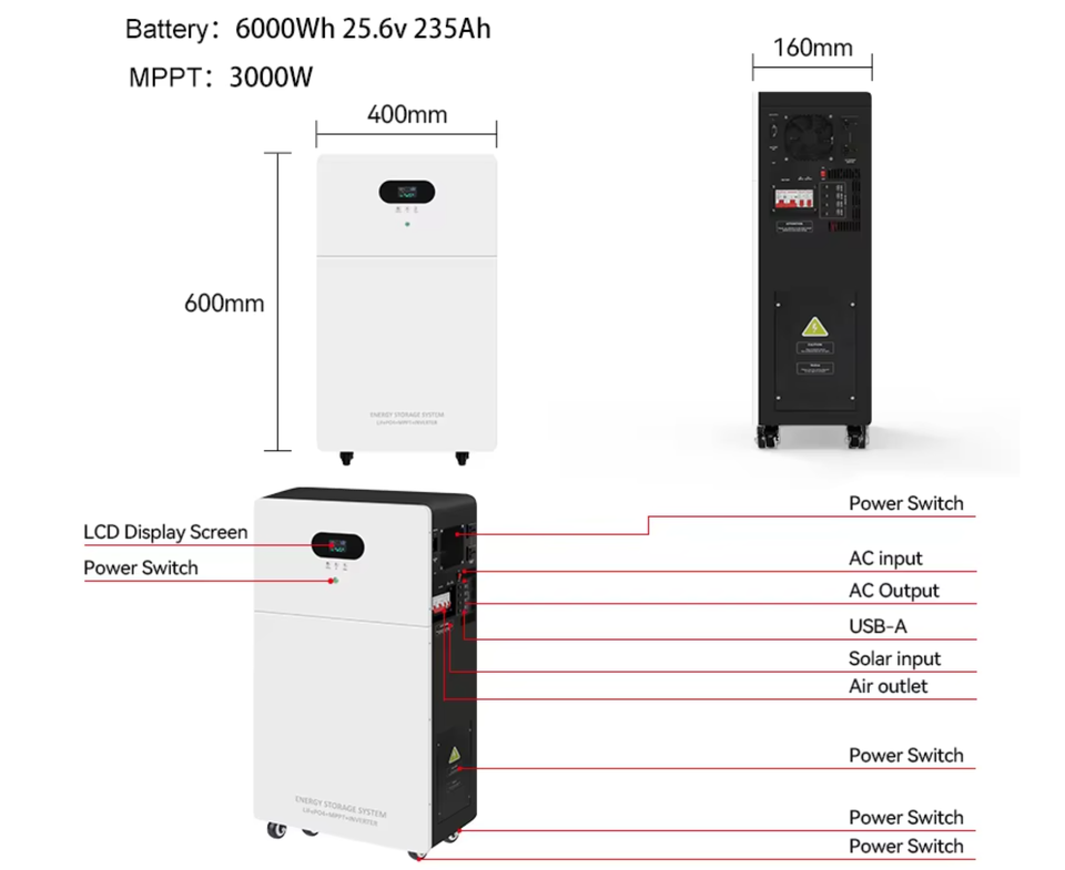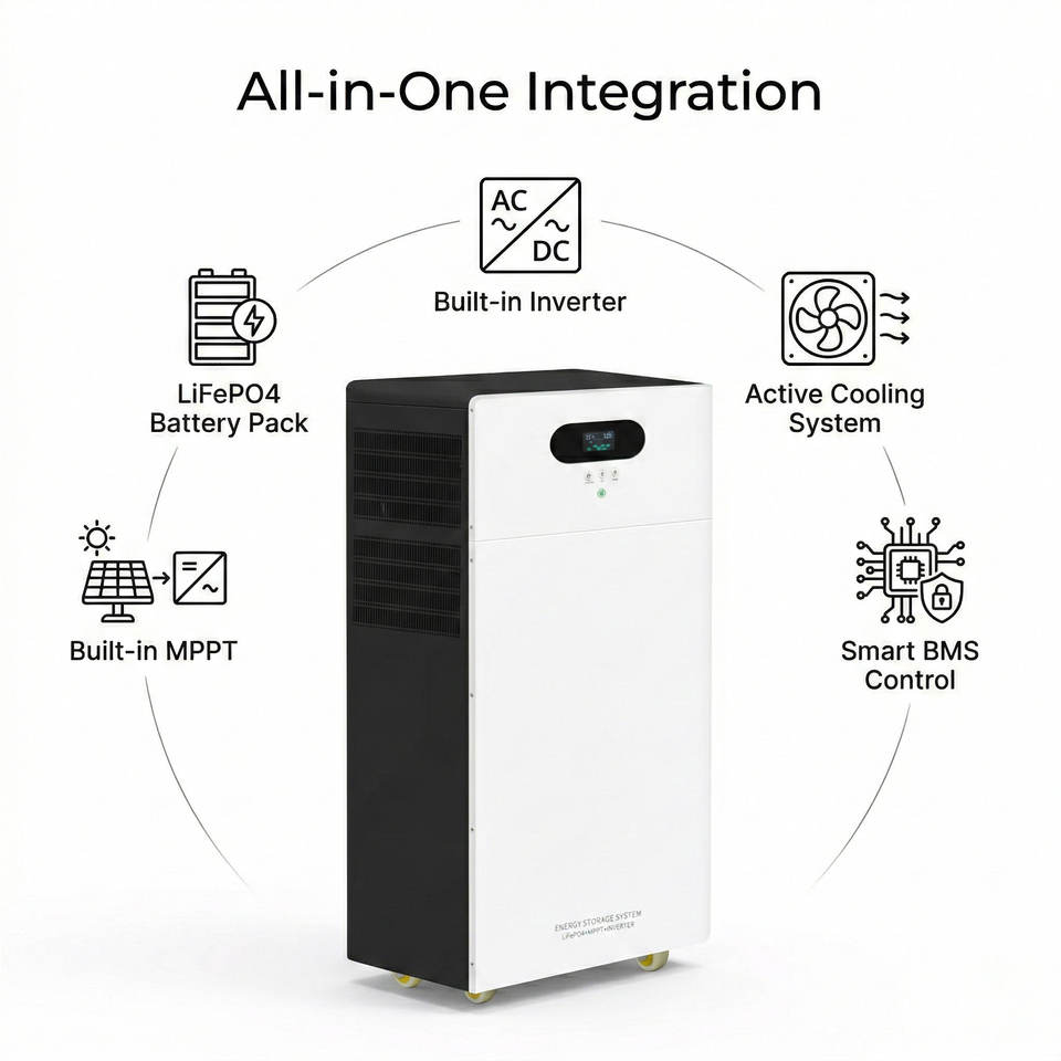 51.2โวลต์300Ah 100AH แบบ all-in-One เครื่องแปลง LiFePO4แบตเตอรี่ติดผนัง5kW-10kW ไฮบริดออฟกริด IP65สำหรับยุโรป