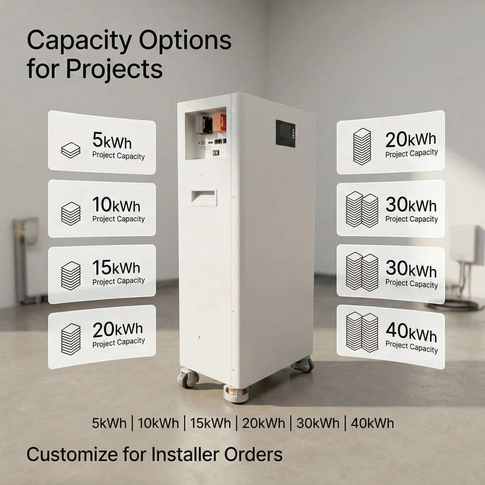 แบตเตอรี่เก็บพลังงานแสงอาทิตย์สำหรับบ้าน 51.2V 200Ah 10kWh แบบติดผนังพร้อมกล่องเก็บแบบม้วนแนวตั้ง สำหรับระบบจัดการพลังงานอัจฉริยะ