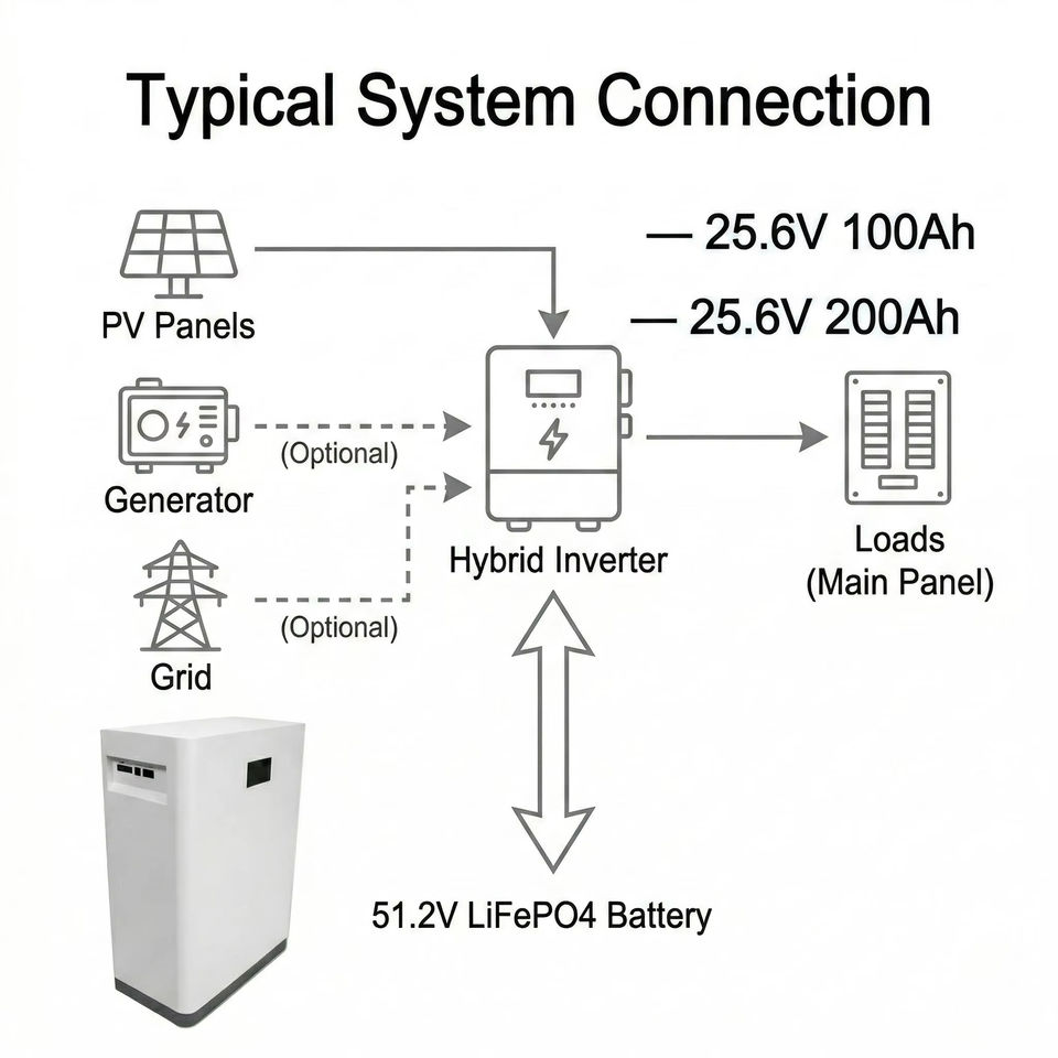 แบตเตอรี่พลังงานแสงอาทิตย์ LiFePO4 51.2โวลต์5kWh ระบบ10kWh เก็บพลังงานติดผนังแบบวางซ้อนกันได้สามารถ RS485กริดพลังงานสำรอง